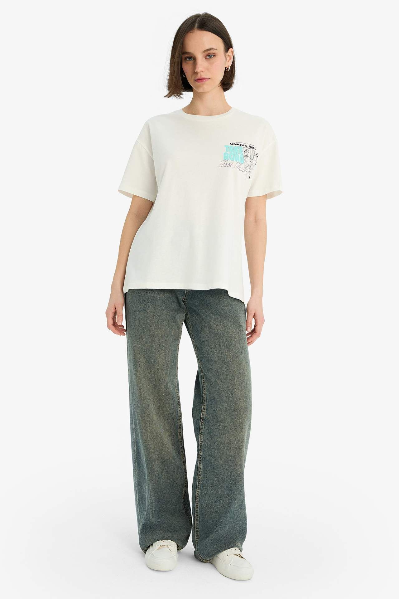 DeFacto Coool Oversize Geniş Kalıp Bisiklet Yaka Baskılı Kısa Kollu Tişört F2241AX25SMWT32
