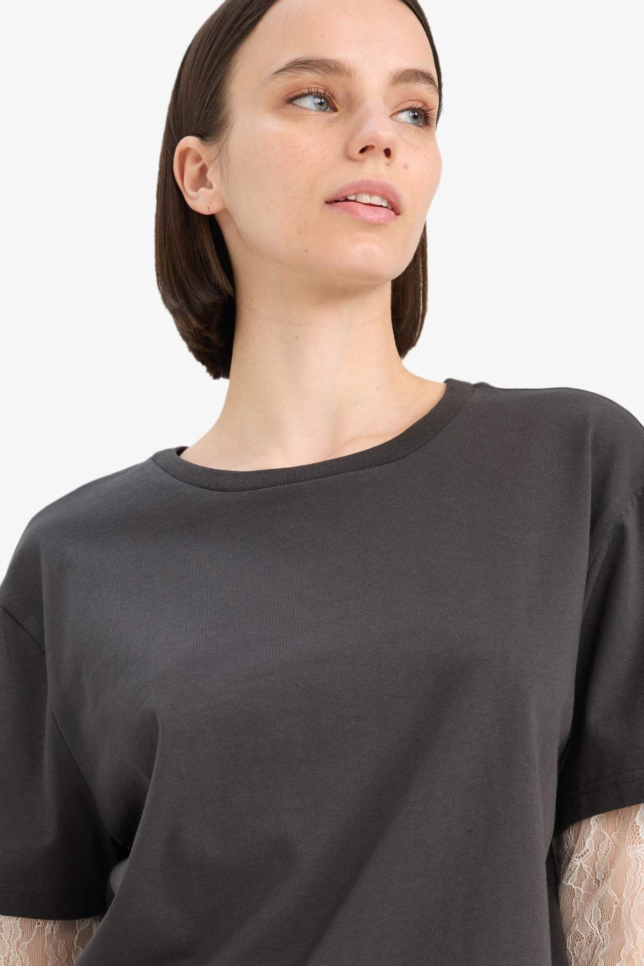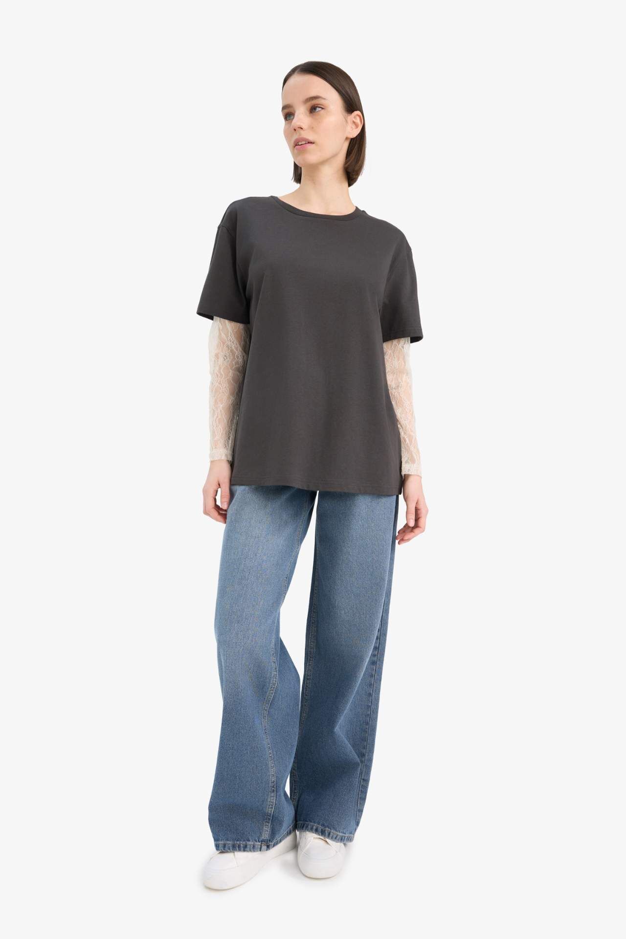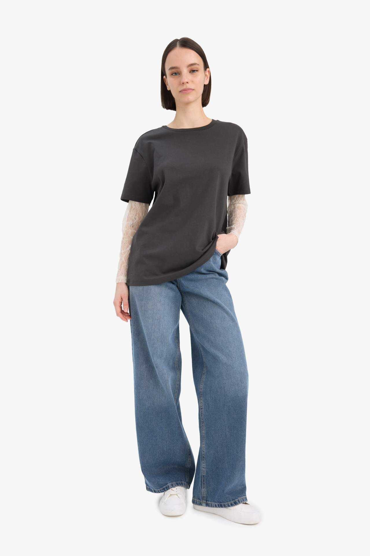 Oversize geniş kalıbı ve zarif dantel detaylarıyla dikkat çeken bisiklet yaka uzun kollu tişört, hem rahat hem de feminen bir stil sunar. Günlük kombinlere şıklık katar. Pamuk 100%,Poliamid 100%,Elastan 0%,Pamuk 100%,Poliamid 100%,Elastan 0%,Pamuk 100%,Poliamid 100%,Elastan 0%,Pamuk 100%,Poliamid 100%,Elastan 0%,Pamuk 100%,Poliamid 100%,Elastan 0%