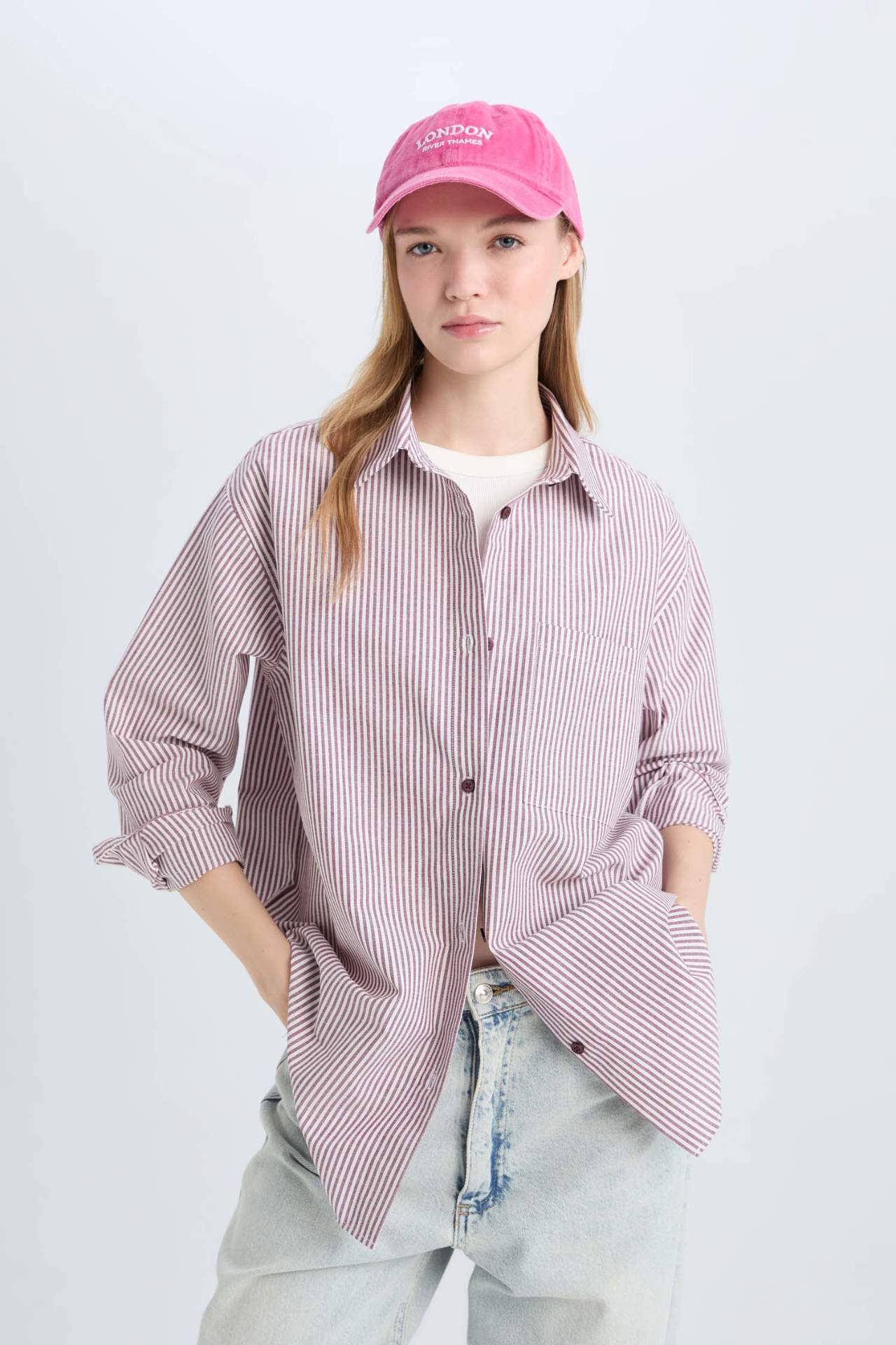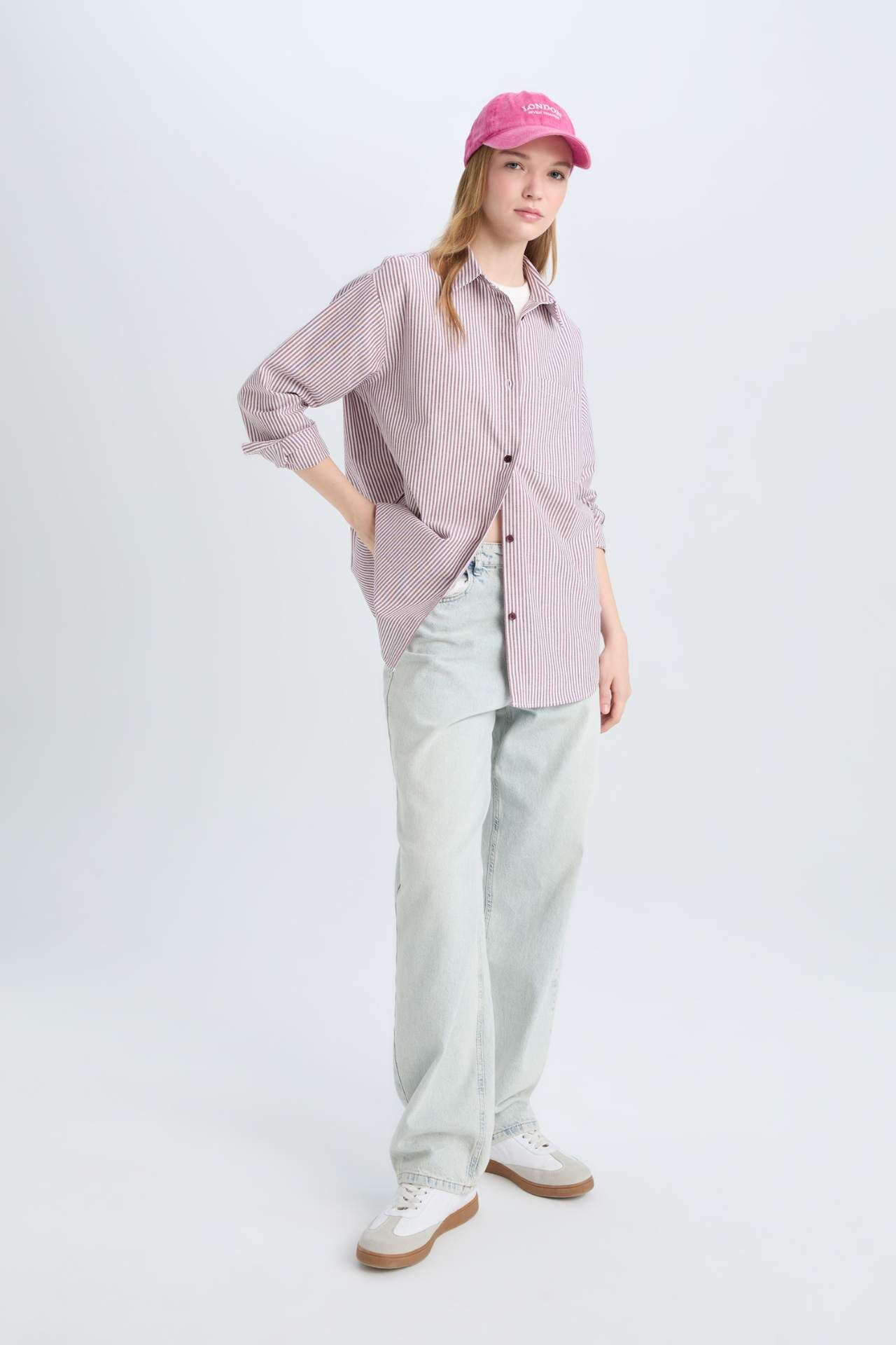 DeFacto Coool Oversize Geniş Kalıp Çizgili Oxford Uzun Kollu Gömlek