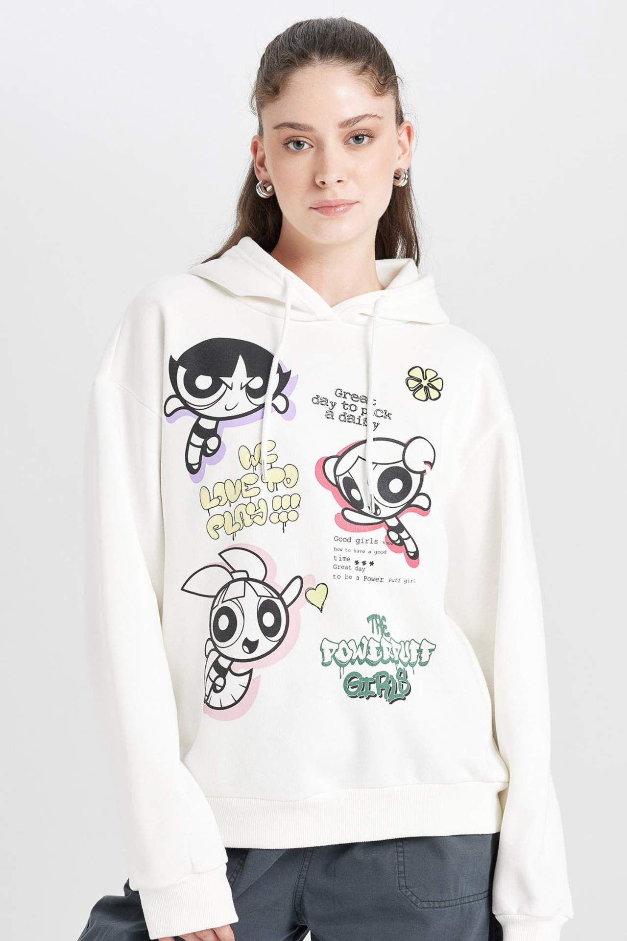 DeFacto Coool PowerPuff Girls Oversize Fit Kapüşonlu Baskılı Kalın Kumaş Sweatshirt