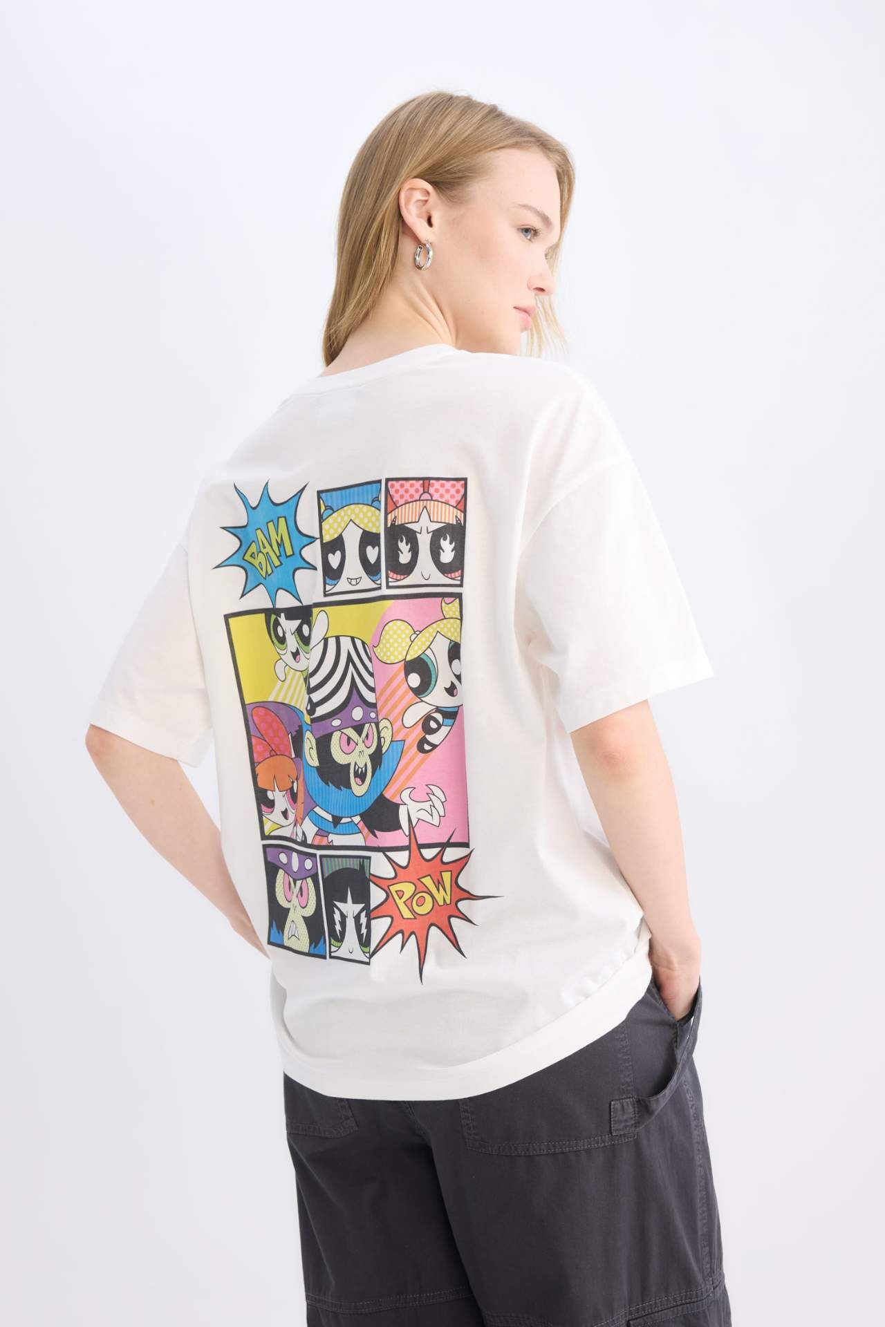 Coool PowerPuff Girls Oversize Geniş Kalıp Bisiklet Yaka Sırt Baskılı Kısa Kollu Tişört