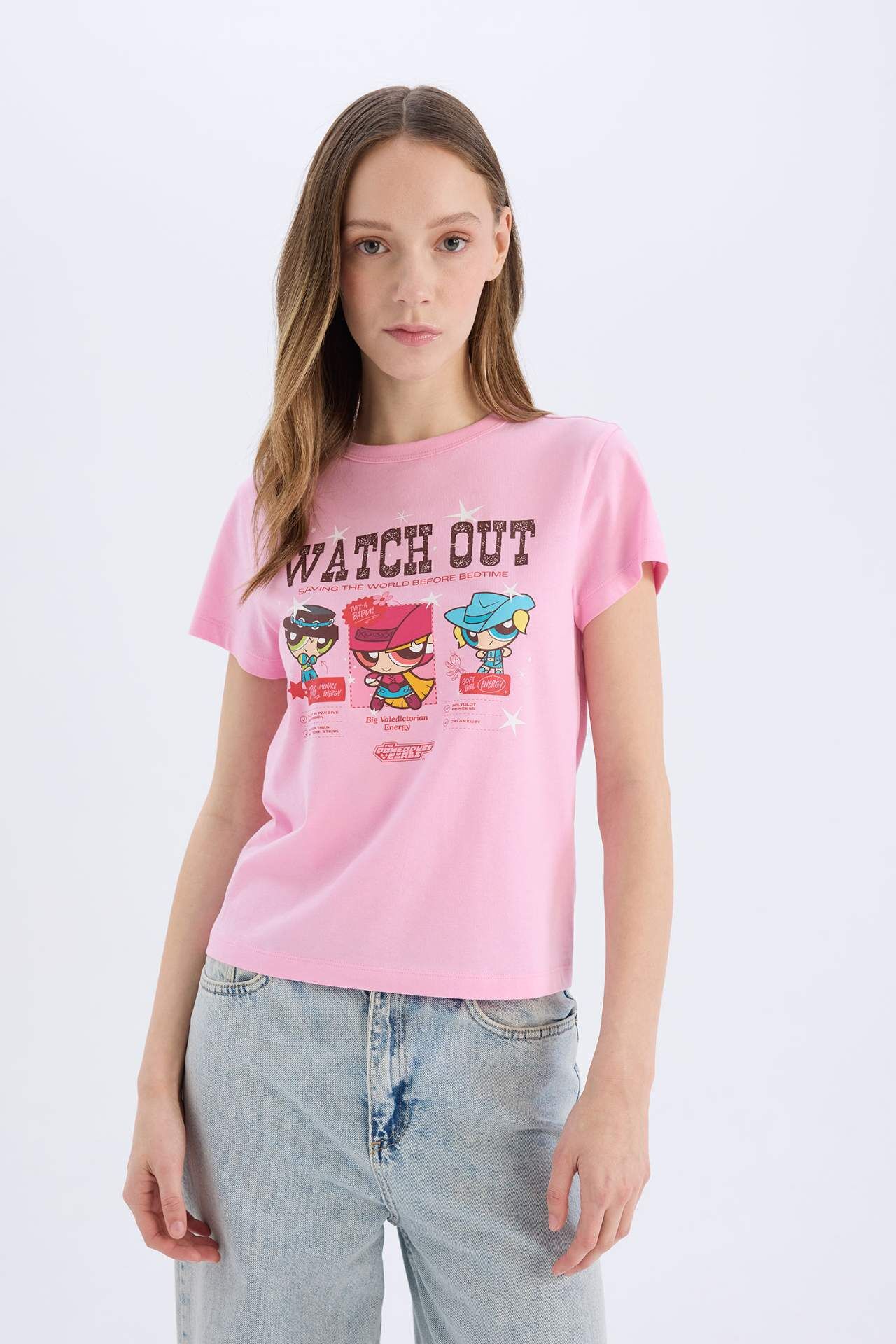 Coool PowerPuff Girls Regular Fit Bisiklet Yaka Baskılı Ribana Kısa Kollu Tişört