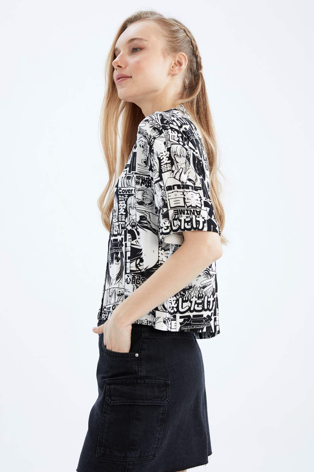 DeFacto Coool Regular Fit Pijama Yaka Desenli Kısa Kollu Gömlek