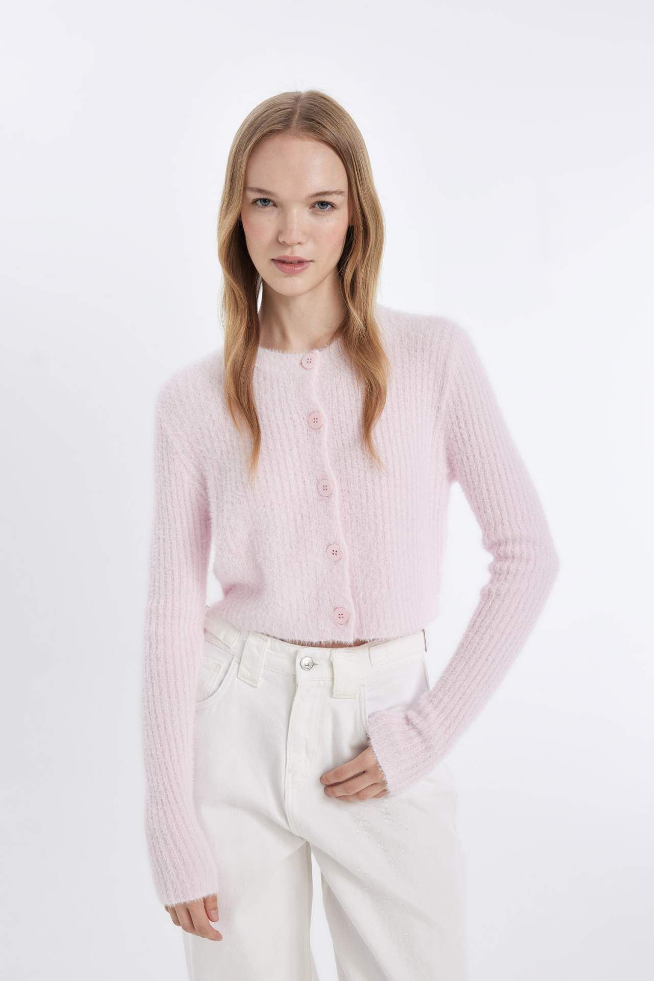 Slim fit dar kesim bisiklet yaka triko hırka, vücuda oturan şık tasarımıyla modern ve zarif bir görünüm sunar. İnce triko dokusu sayesinde hem tek başına hem katmanlı kombinlerde rahatlıkla kullanılabilir. Akrilik 17%,Poliester 83%,Akrilik 17%,Poliester 83%