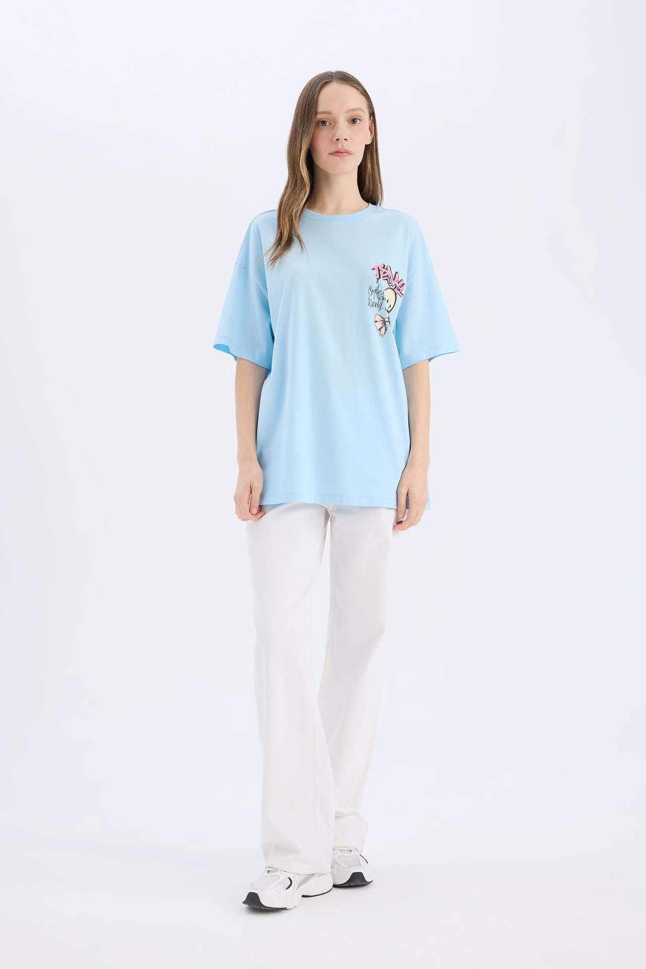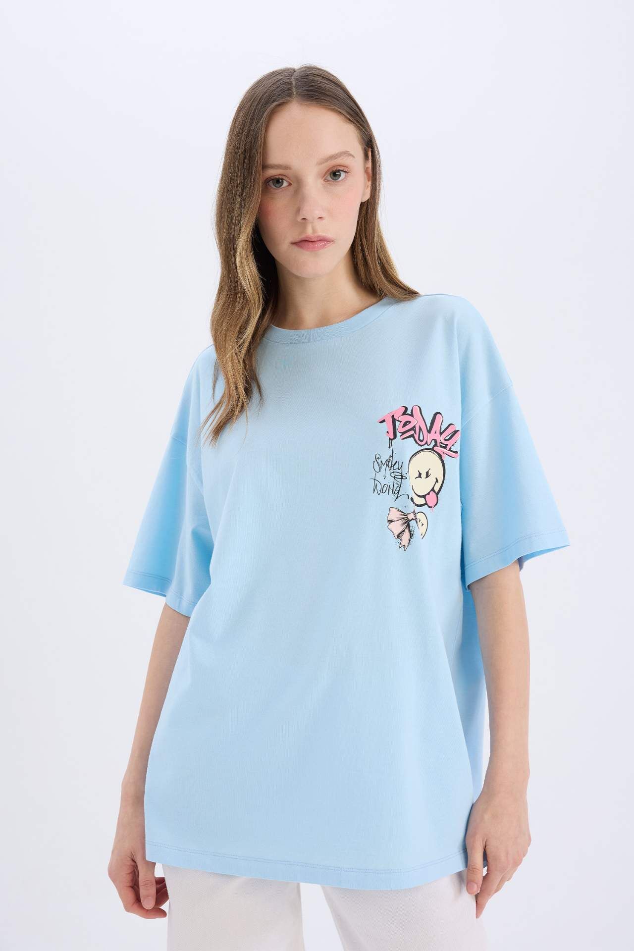 Coool SmileyWorld Oversize Geniş Kalıp Bisiklet Yaka Sırt Baskılı Kısa Kollu Tişört
