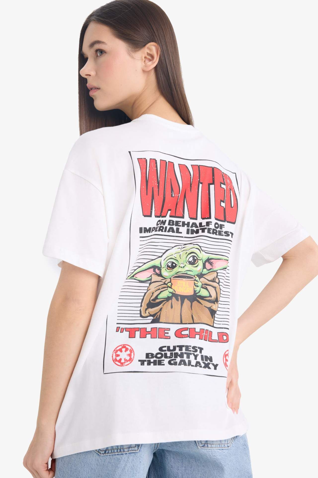 Coool Star Wars-Mandalorian Oversize Geniş Kalıp Bisiklet Yaka Sırt Baskılı Kısa Kollu Tişört