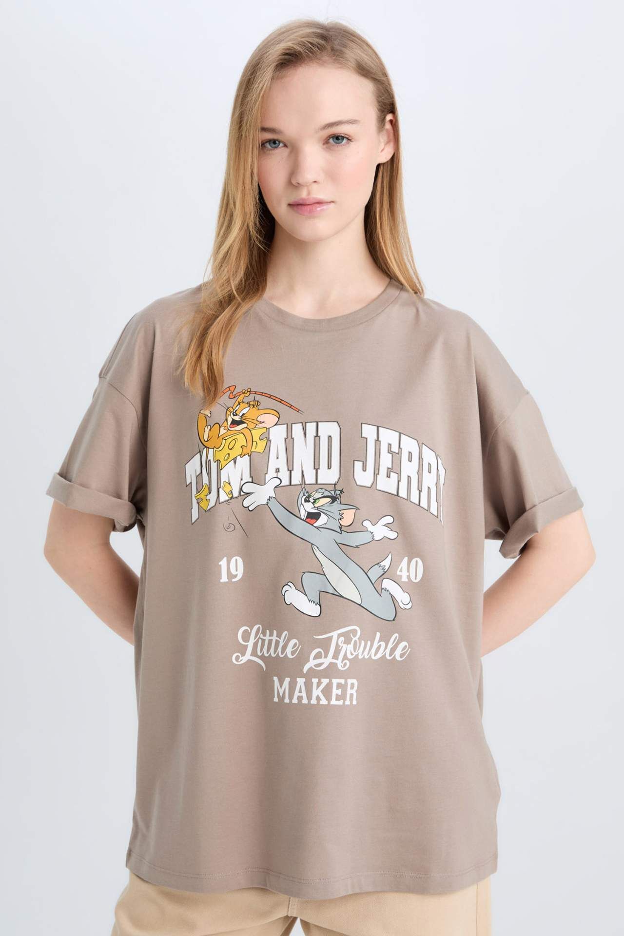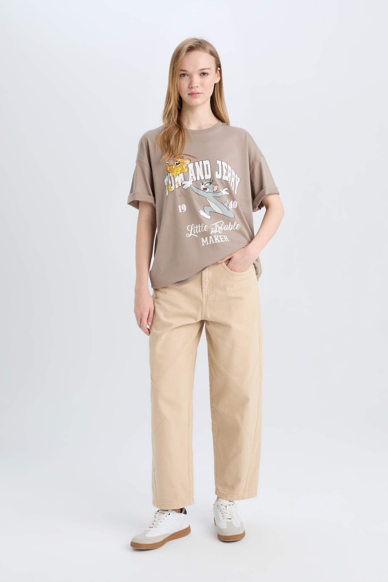 Tom & Jerry Oversize Geniş Kalıp Bisiklet Yaka Kısa Kollu Tişört, rahat oversize kesimi ve eğlenceli baskısıyla stilinize eğlenceli bir dokunuş katar. Bisiklet yaka ve kısa kol tasarımı gün boyu konfor sağlar. Canlı tasarımıyla günlük kombinlerde dikkat çekici bir parça olarak öne çıkar. Pamuk 100%,Pamuk 100%,Pamuk 100%,Pamuk 100%,Pamuk 100%,Pamuk 100%