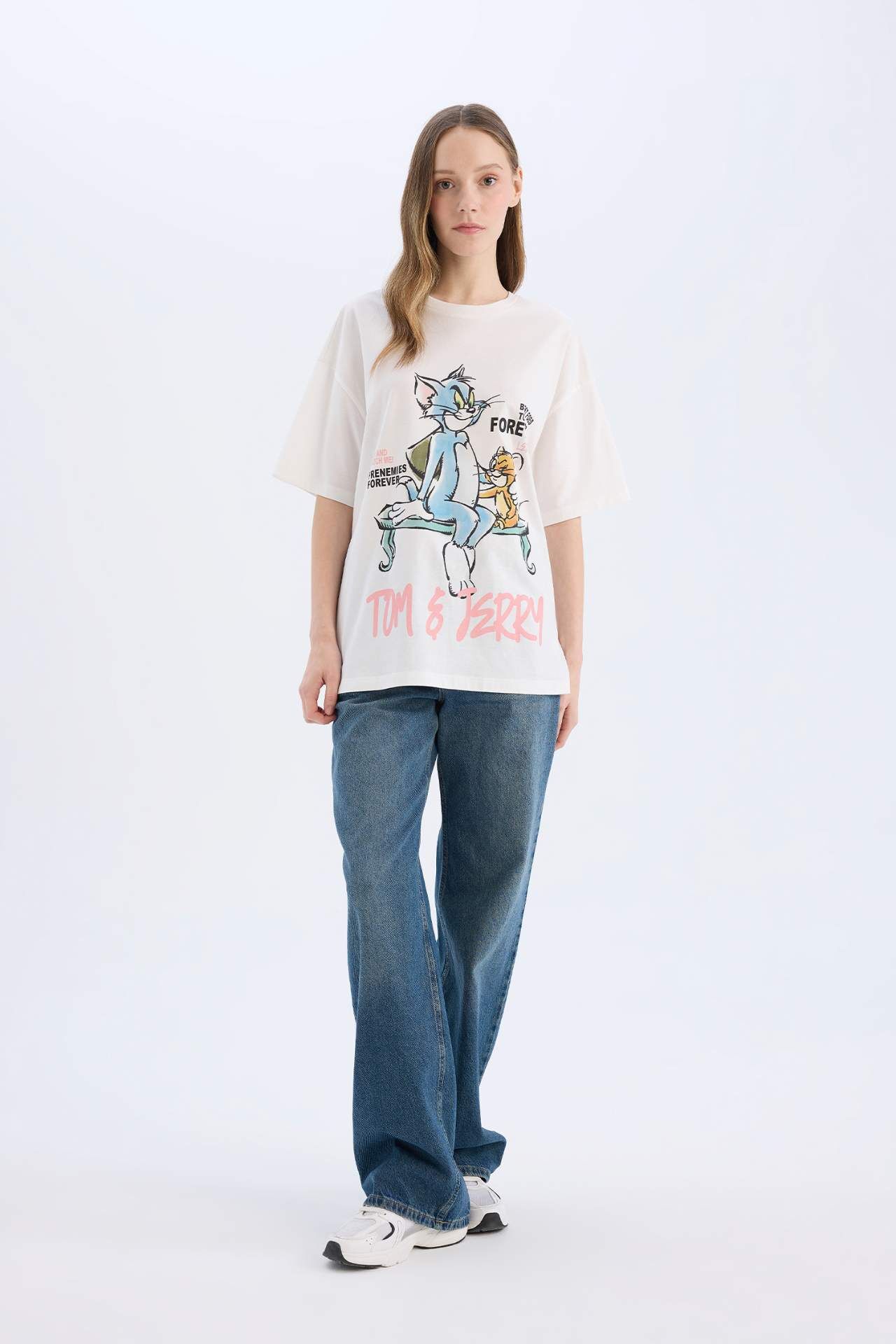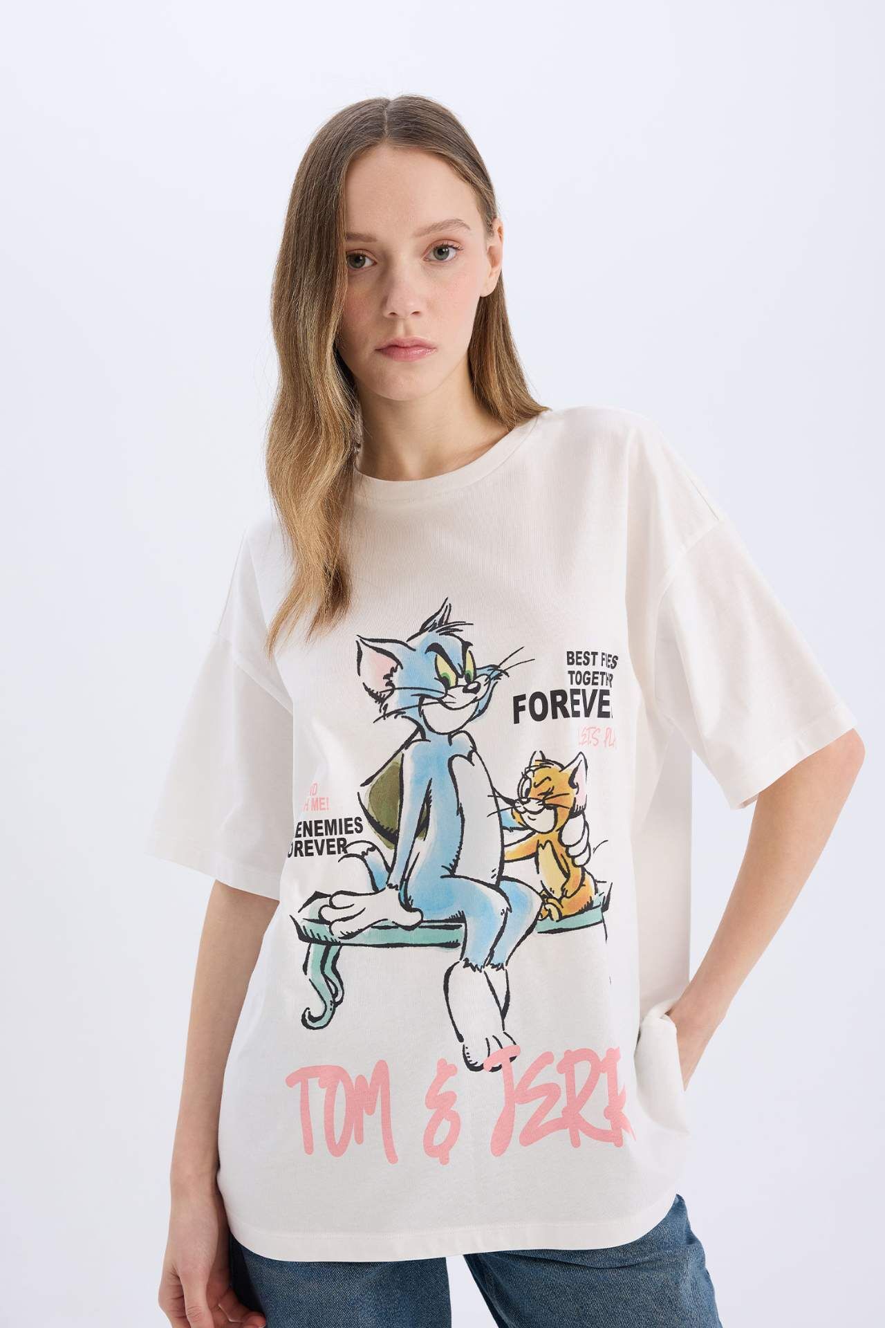 Tom & Jerry oversize tişört, geniş kalıbı ve bisiklet yaka tasarımıyla rahat ve salaş bir kullanım sunar. Sırt baskısı detayıyla eğlenceli ve dikkat çekici bir stil yaratır. Günlük kombinlerde hem konforlu hem de karakter odaklı bir tercih olarak öne çıkar. Pamuk 100%,Pamuk 100%,Pamuk 100%,Pamuk 100%,Pamuk 100%,Pamuk 100%