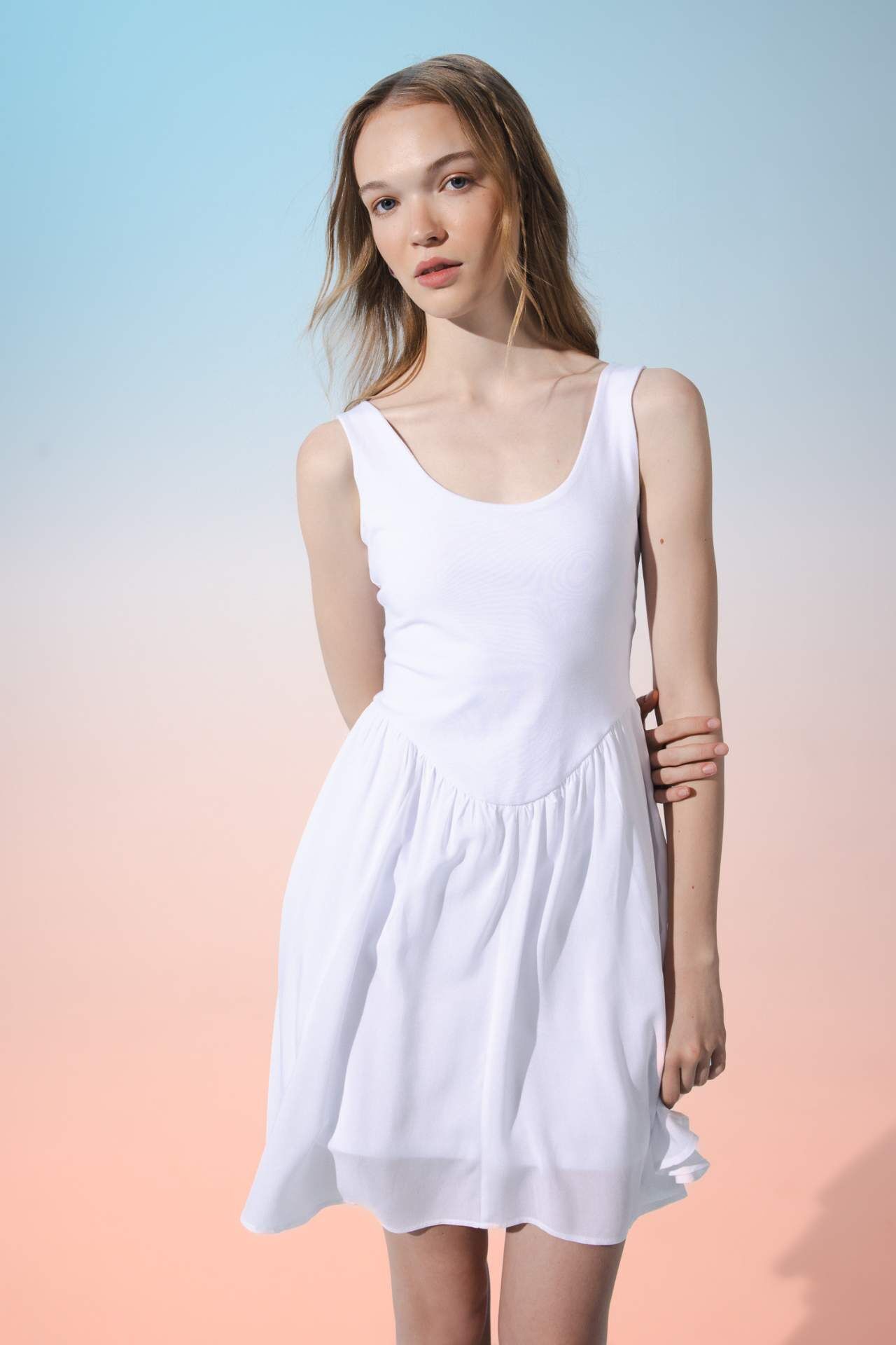Coool Yuvarlak Yaka Beyaz Askılı Mini