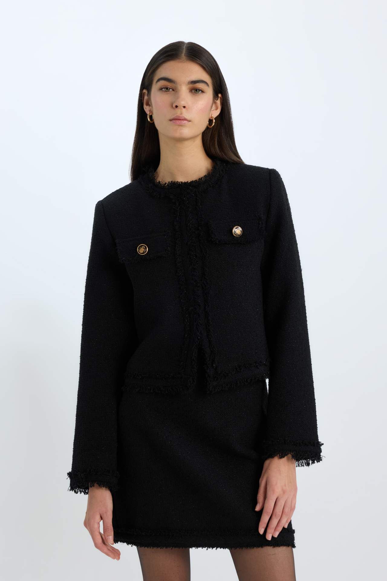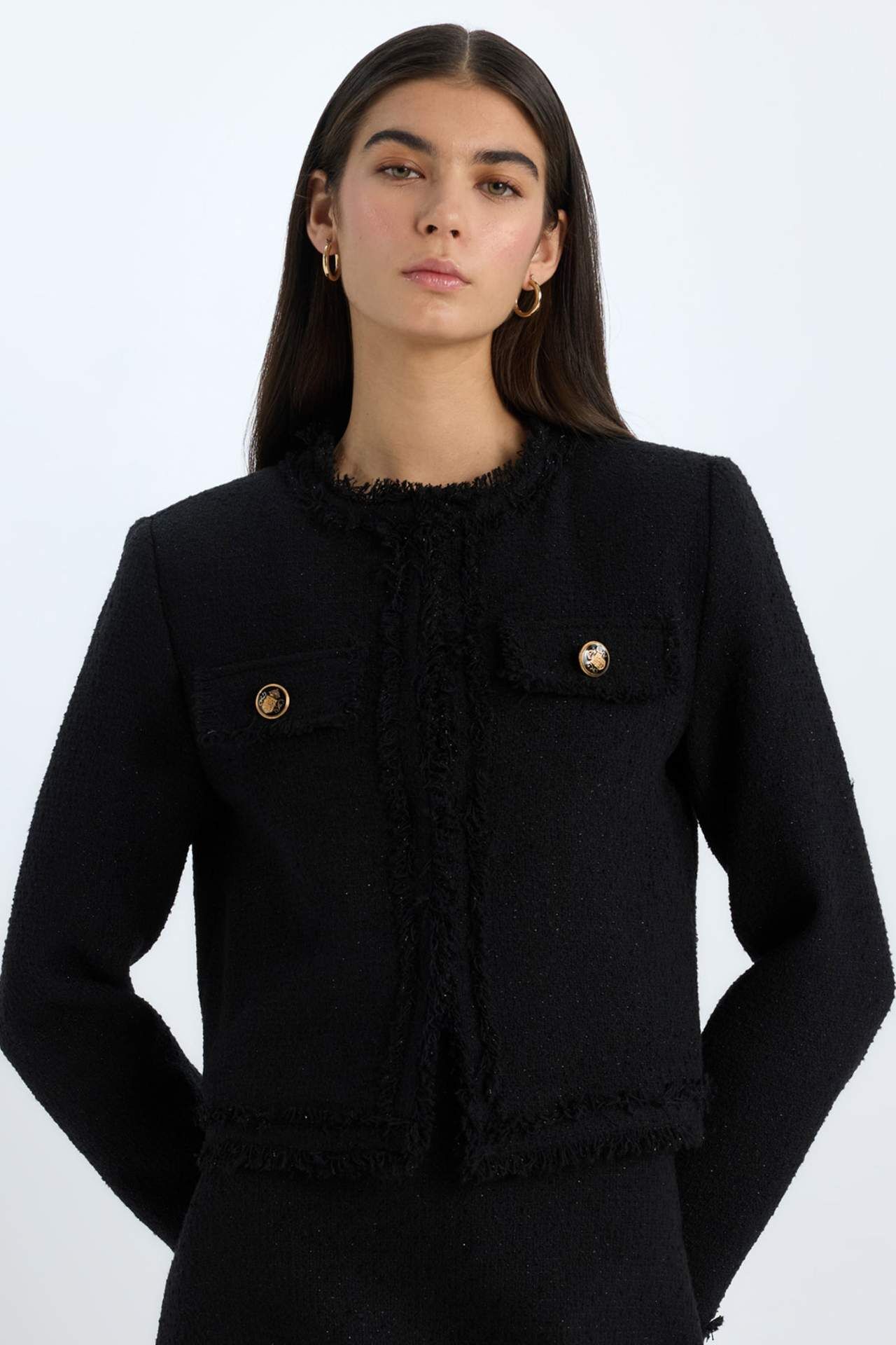 DeFacto Crop Bisiklet Yaka Tweed Blazer Ceket