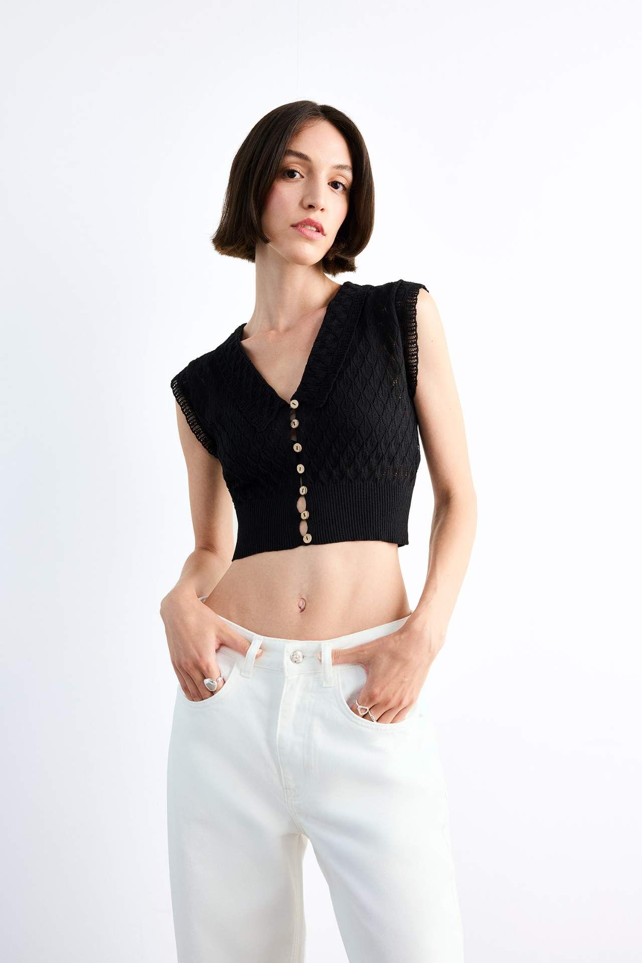DeFacto Crop Büyük Yaka Düğmeli Triko Atlet