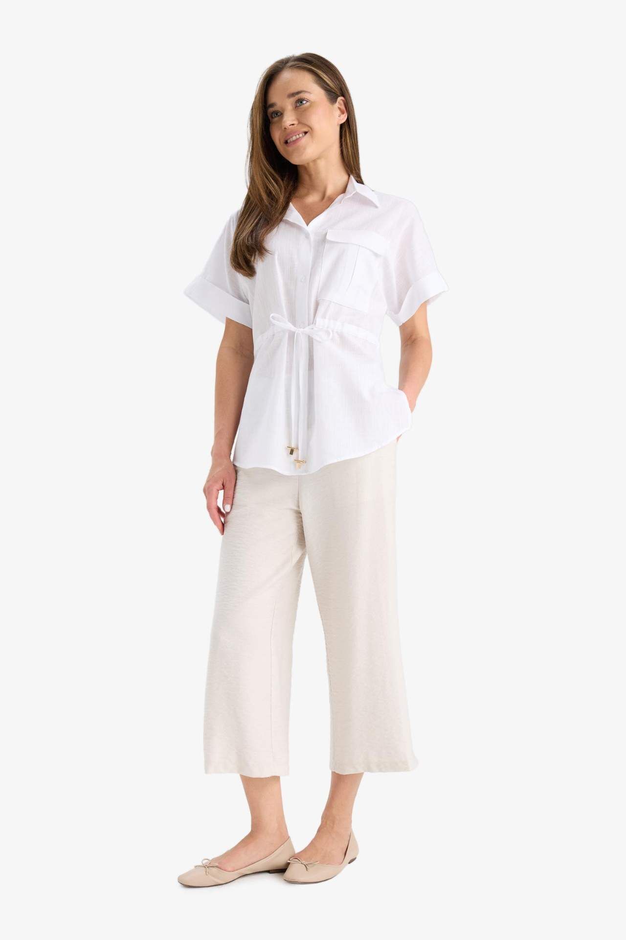 Yetişkin kadınlar için sürdürülebilir bir seçenek olan bu ekru rengi dokuma pantolon, crop fit paça detayı ve kemerli kapama detayı ile dikkat çekiyor. Cep detayları da işlevsellik sağlarken, temel bir kapri olarak gardırobunuzun vazgeçilmezi olmaya aday. Yaz mevsimi için ideal bir seçim. Poliamid 16%,Viskoz 84%,Poliamid 16%,Viskoz 84%,Poliamid 16%,Viskoz 84%,Poliamid 16%,Viskoz 84%,Poliamid 16%,Viskoz 84%,Poliamid 16%,Viskoz 84%,Poliamid 16%,Viskoz 84% Manken Bedeni: Göğüs: 83 Boy: 1,78 Basen: 90 Bel: 62