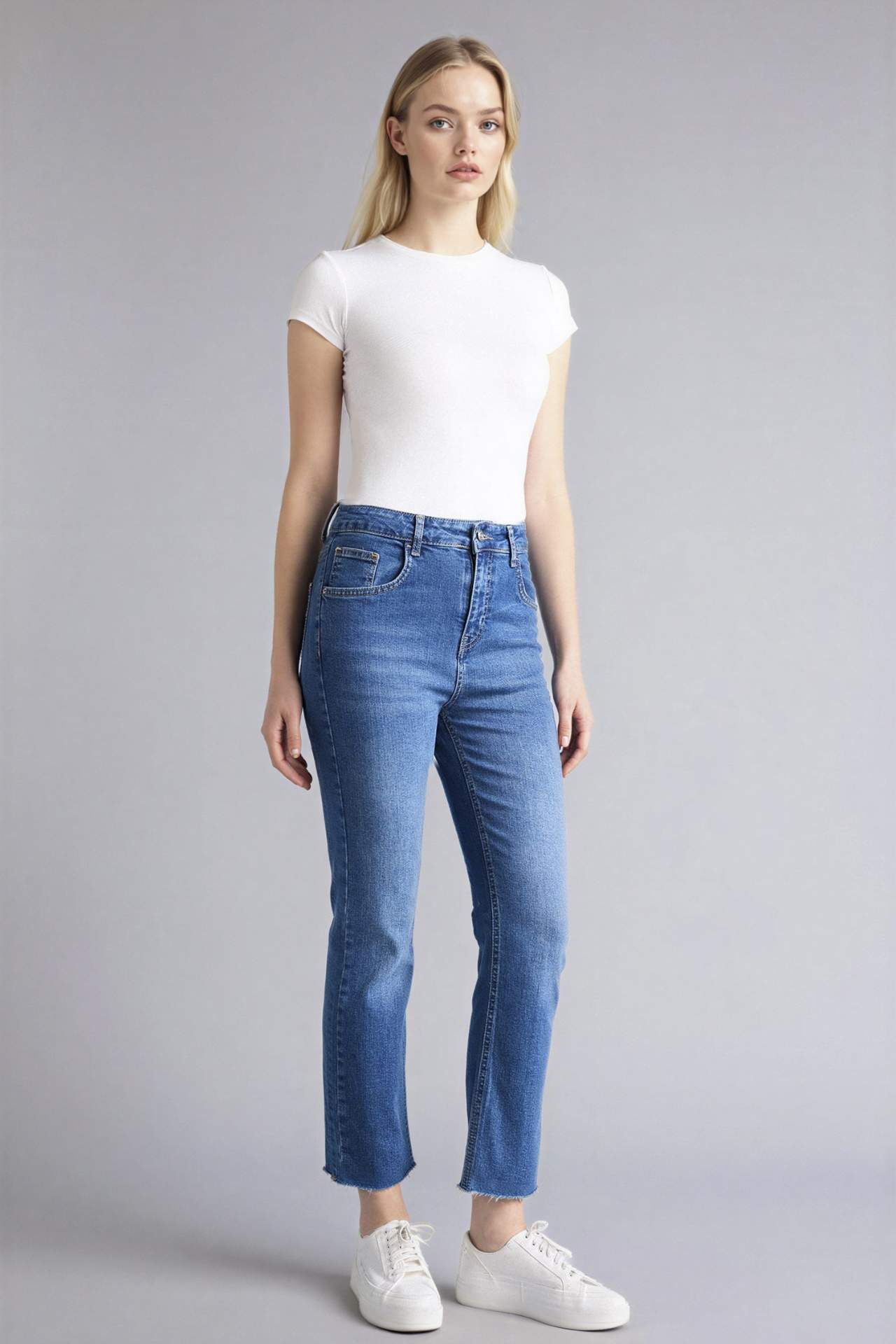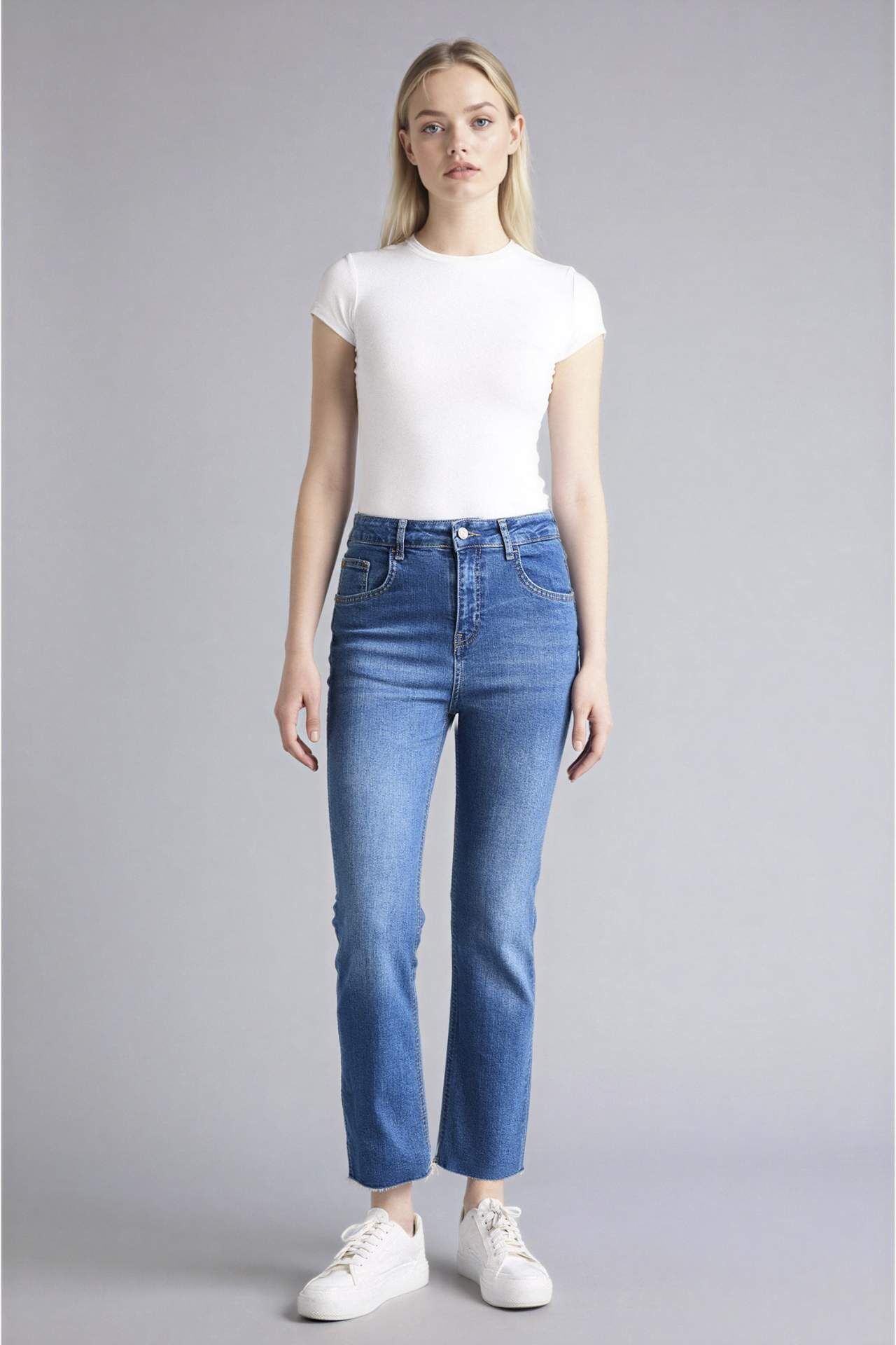 Crop Flare Fıt Yüksek Bel Bilek Boy Jean Yıkamalı Pantolon