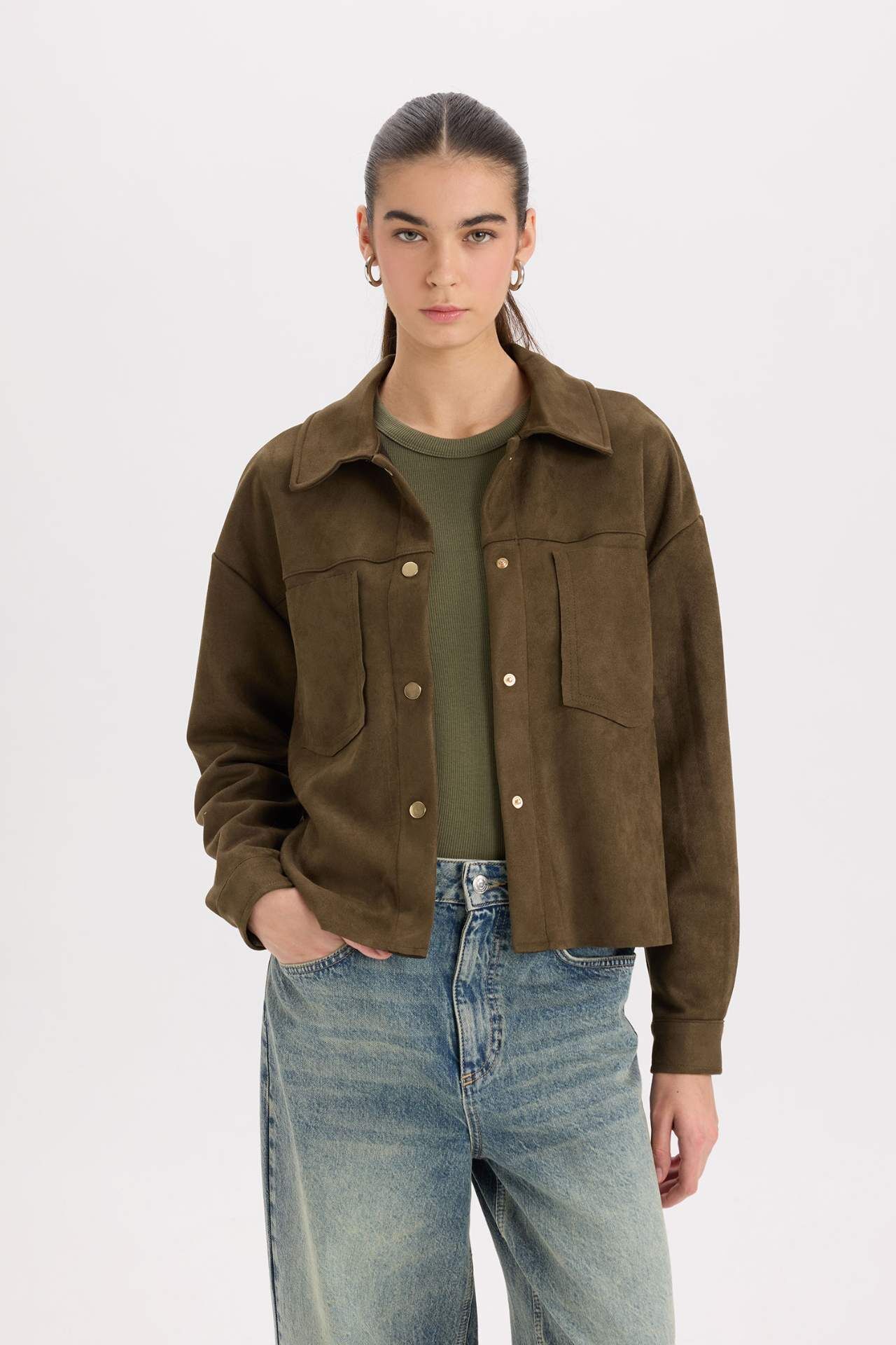 Crop Gömlek Yaka Çıtçıtlı Cepli Süet Gömlek Ceket B2983AX24WNKH447