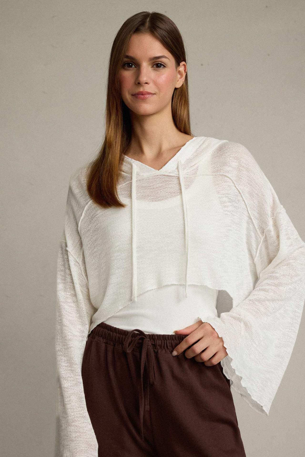 DeFacto Crop Kapüşonlu Pamuklu Uzun Kollu Hırka