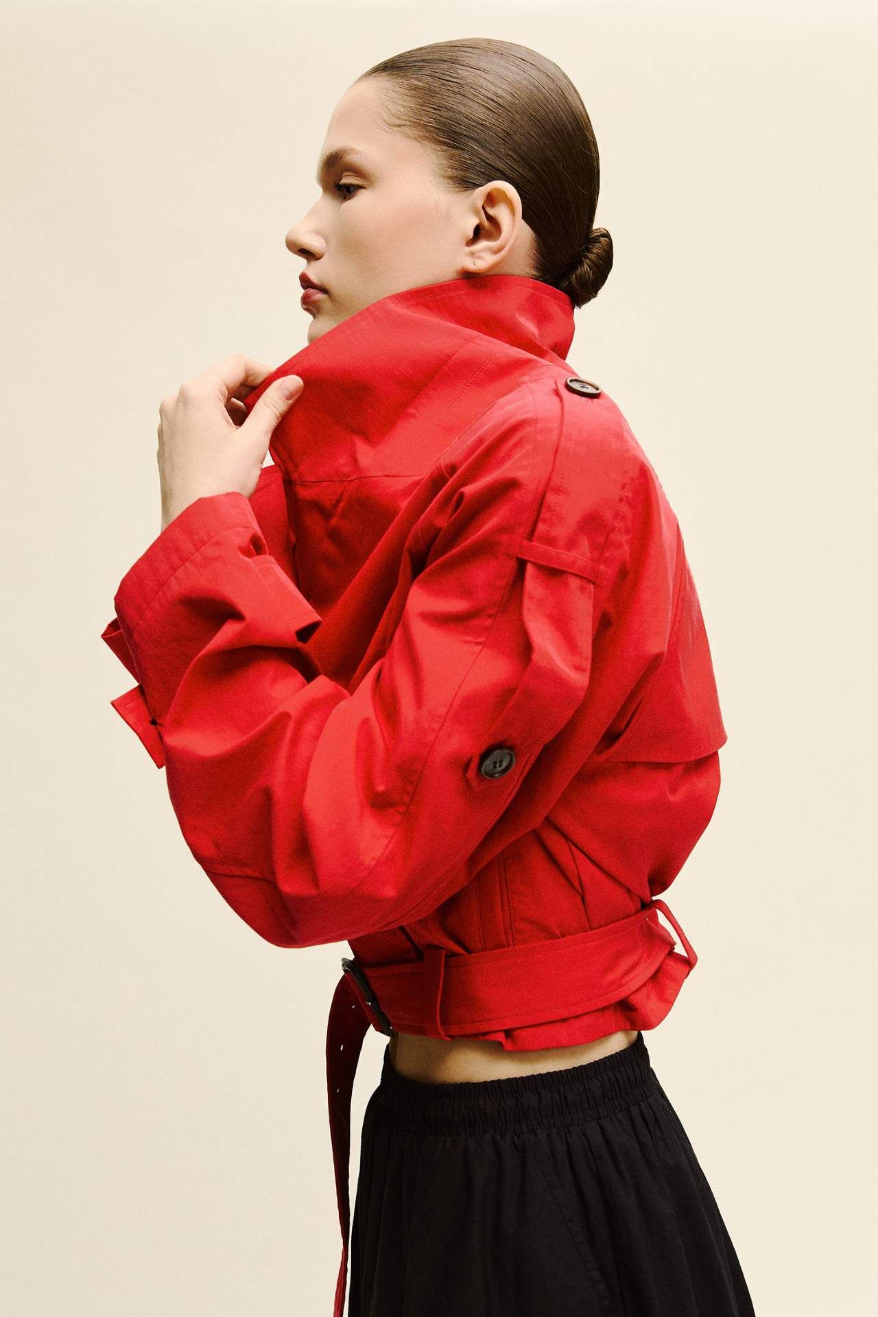 Cropped Fit Twill Trençkot, modern kesimi ve şık tasarımıyla her ortamda şıklığınızı yansıtır. İnce twill kumaşı, rahatlık ve zarafeti bir arada sunar. Poliester 100%,Poliester 100%,Pamuk 68%,Naylon 32% Manken Bedeni: Göğüs: 82 Boy: 1,76 Basen: 88 Bel: 59