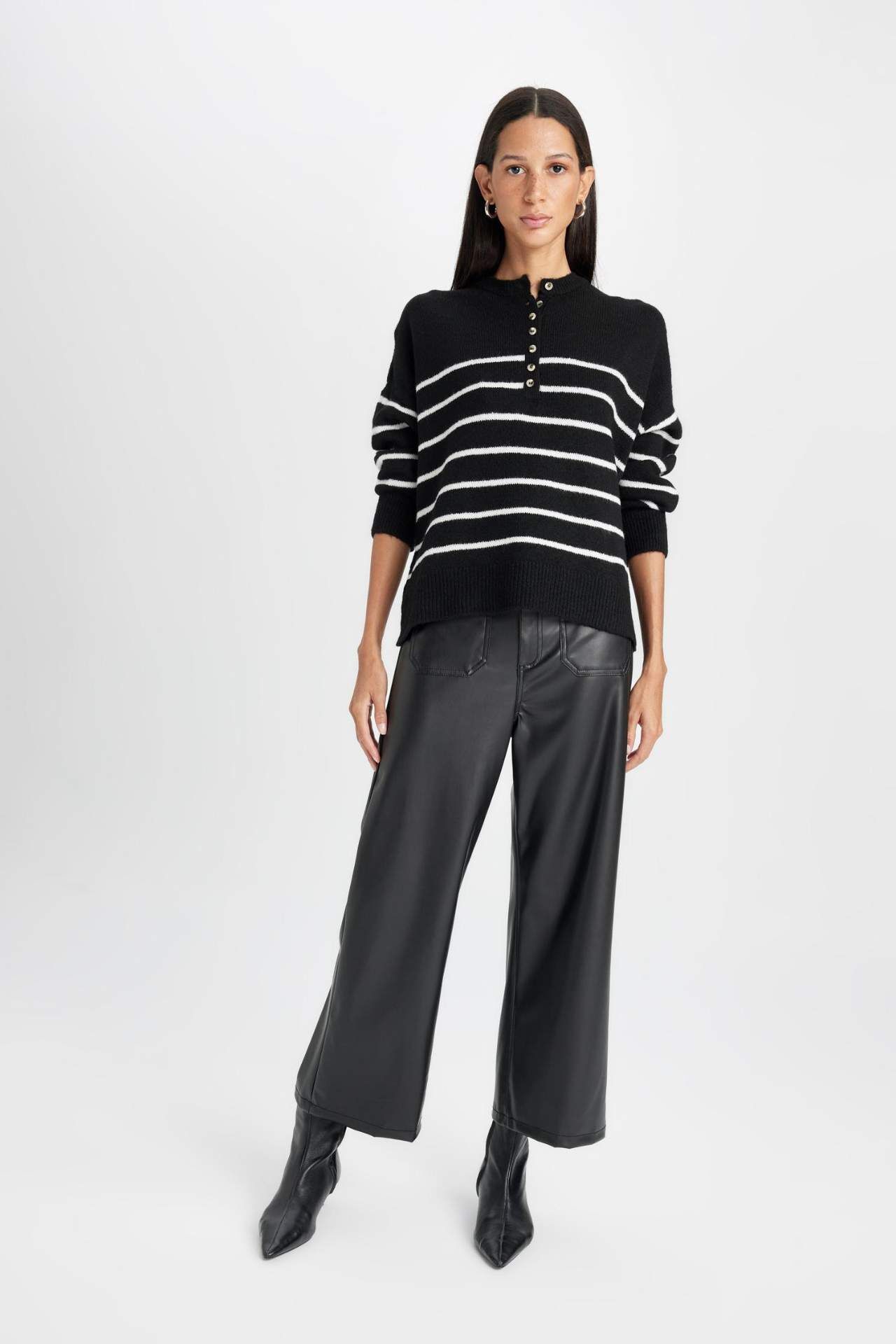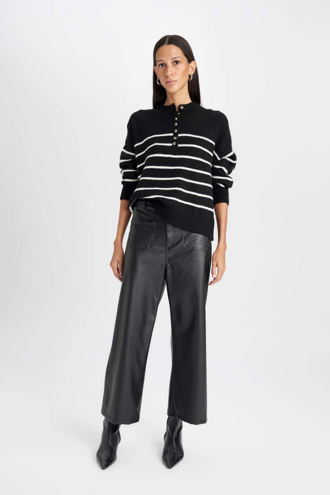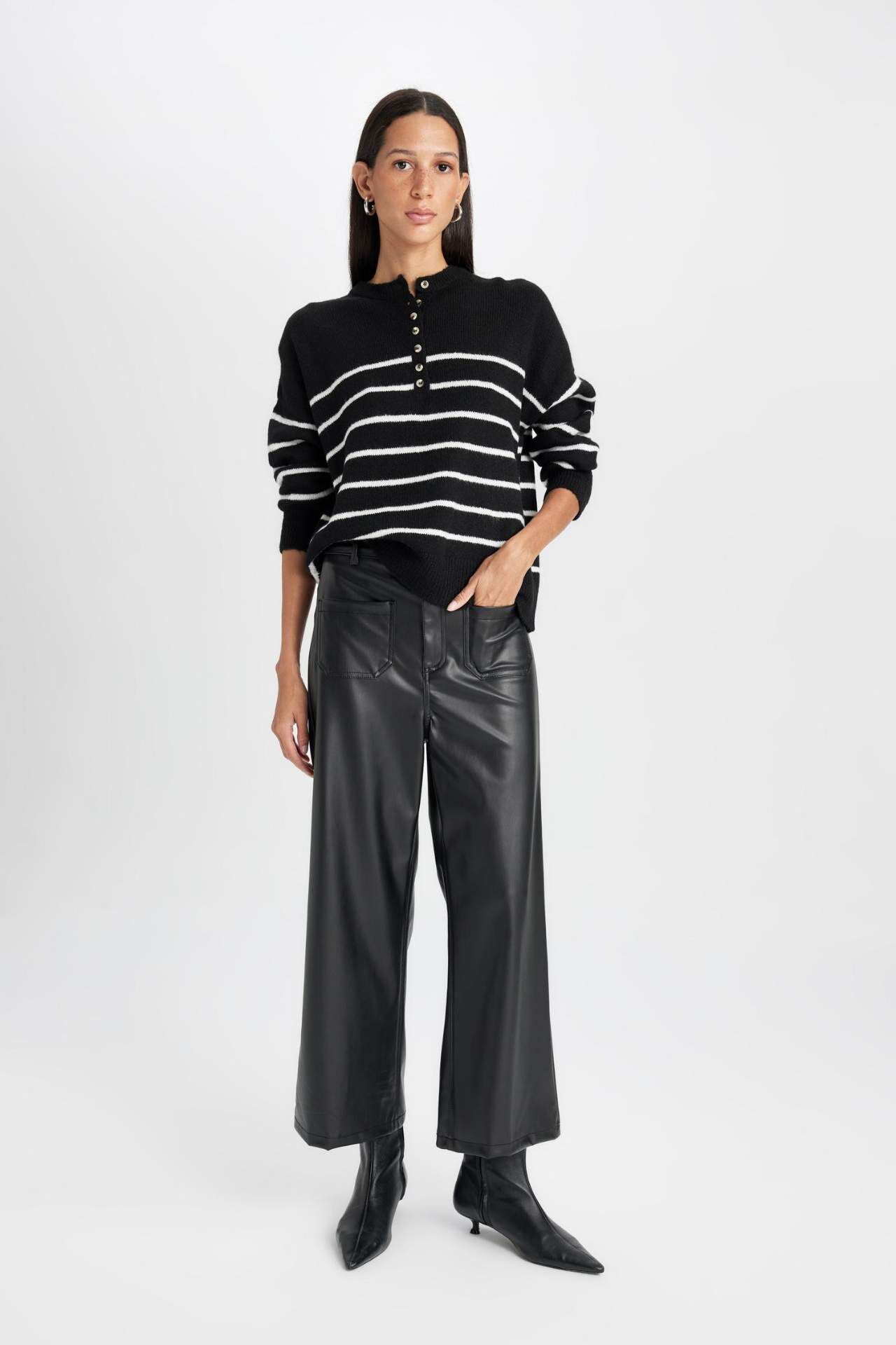 DeFacto Culotte Çift Cepli Yüksek Bel Geniş Paça Suni Deri Pantolon