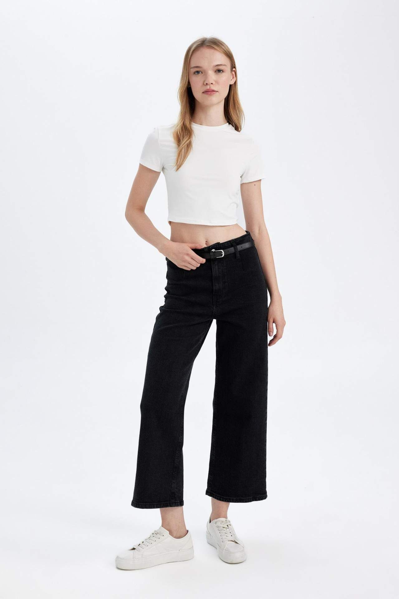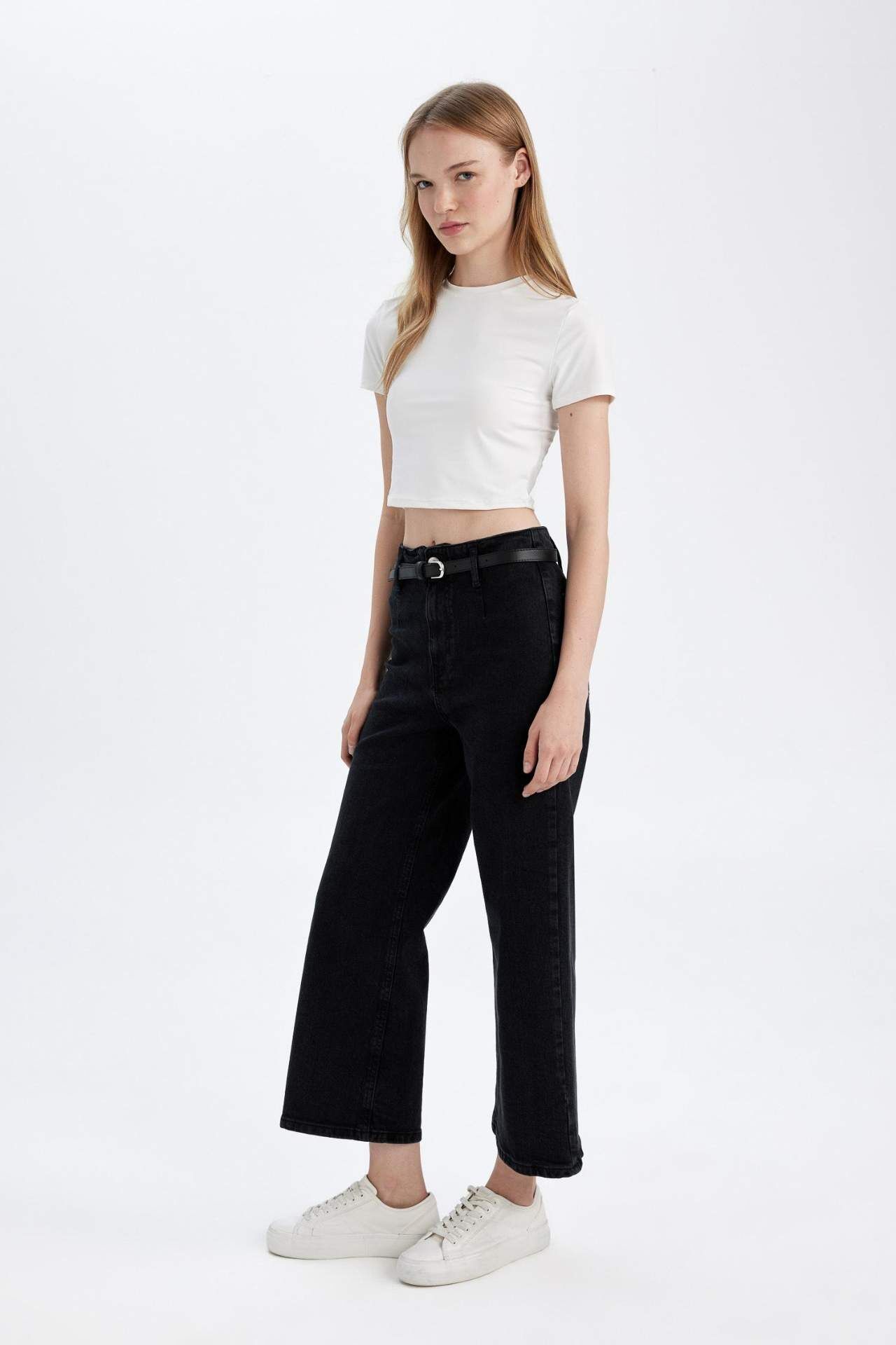Yüksek bel kesimi ve bilek boyu ile şıklığı ve rahatlığı bir arada sunan yıkamalı jean pantolon. Günlük kullanıma uygun olan bu culotte modeli, gardırobunuzun vazgeçilmezi olmaya aday. Kaliteli kumaşı ve modern tasarımı ile her tarza kolayca uyum sağlar. Şimdi keşfedin ve stilinizi tamamlayın. Pamuk 99%,Elastan 1%,Pamuk 99%,Elastan 1%