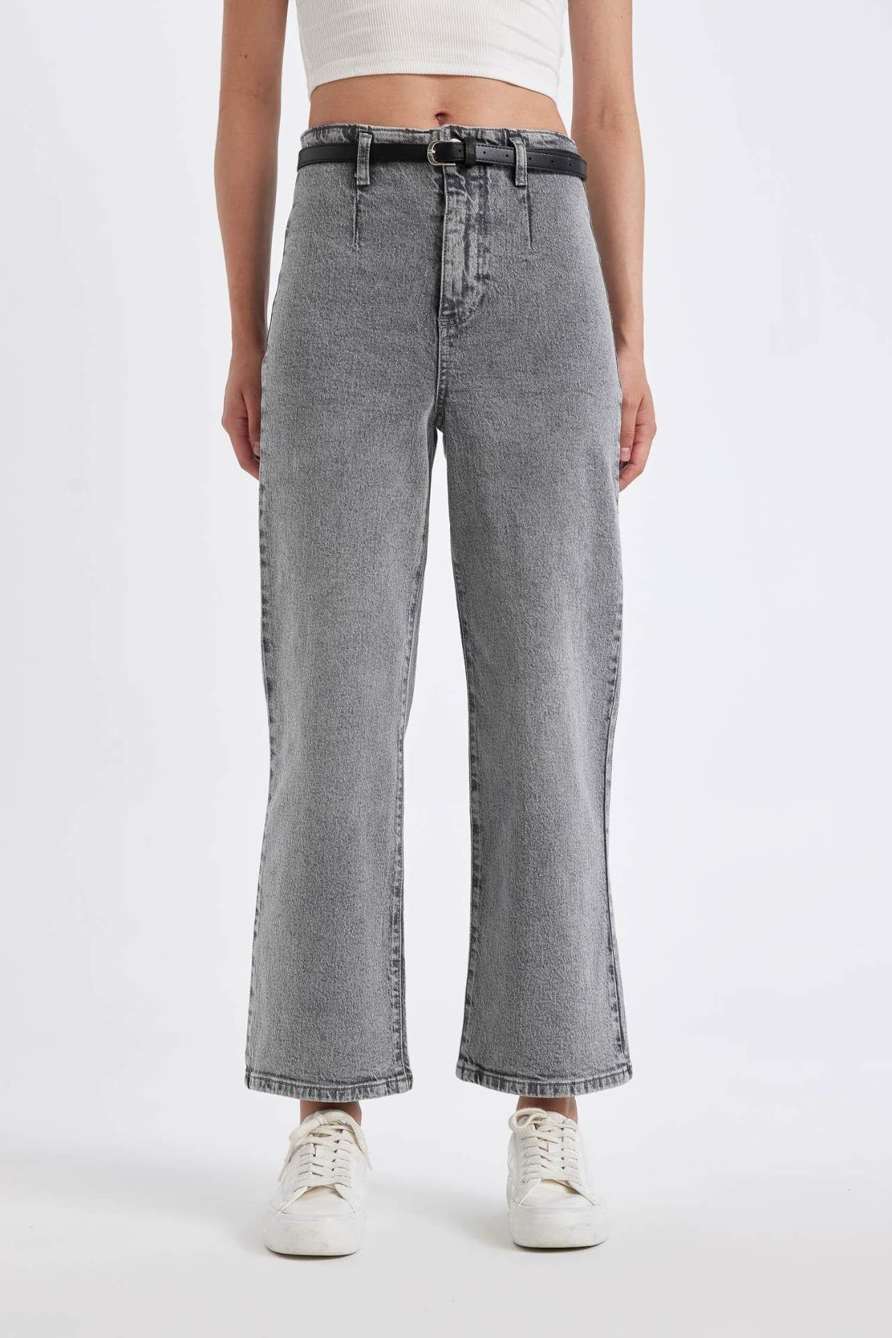 Culotte Yüksek Bel Crop Jean Yıkamalı Pantolon