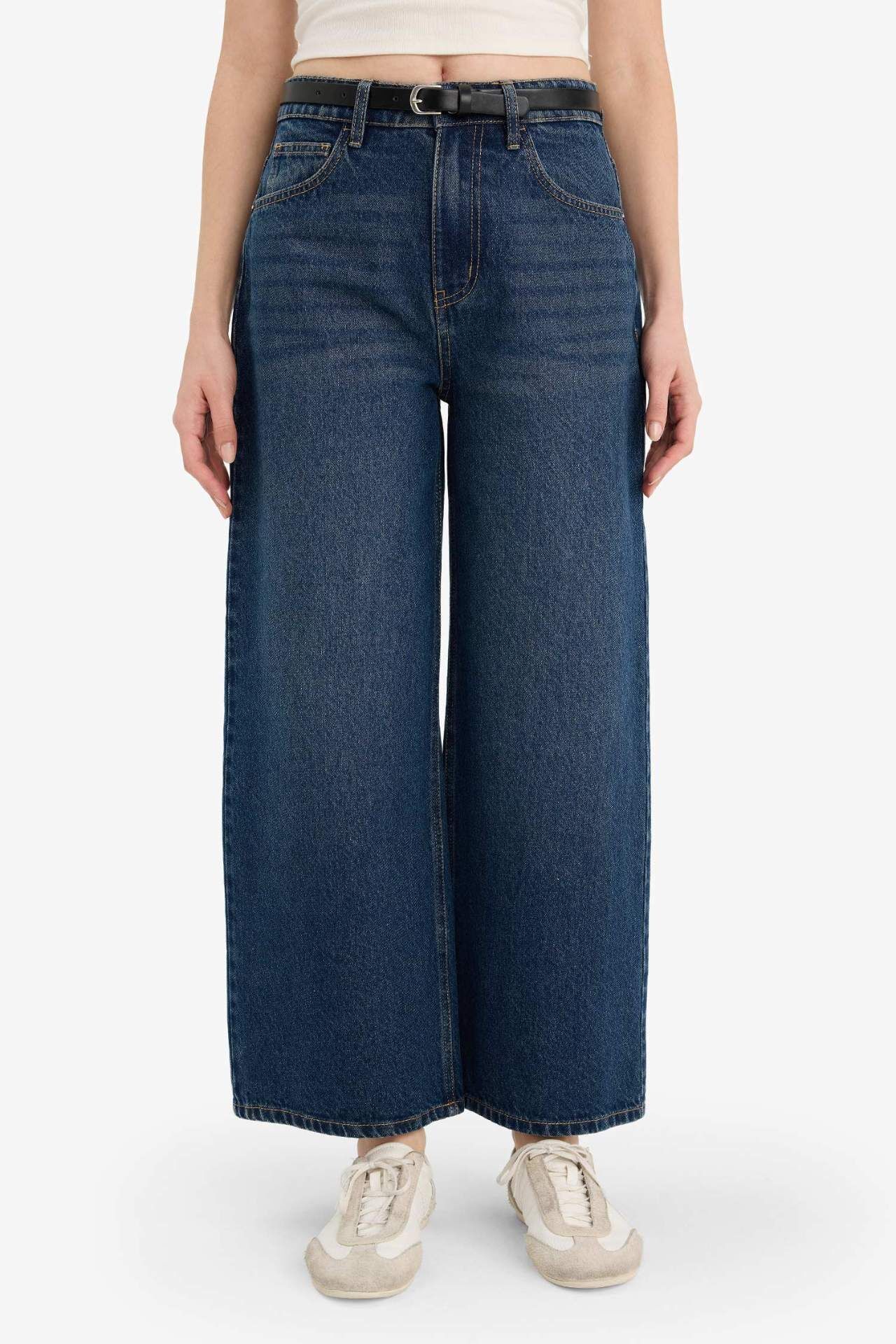 Culotte Yüksek Bel Jean Kar Yıkamalı Pantolon