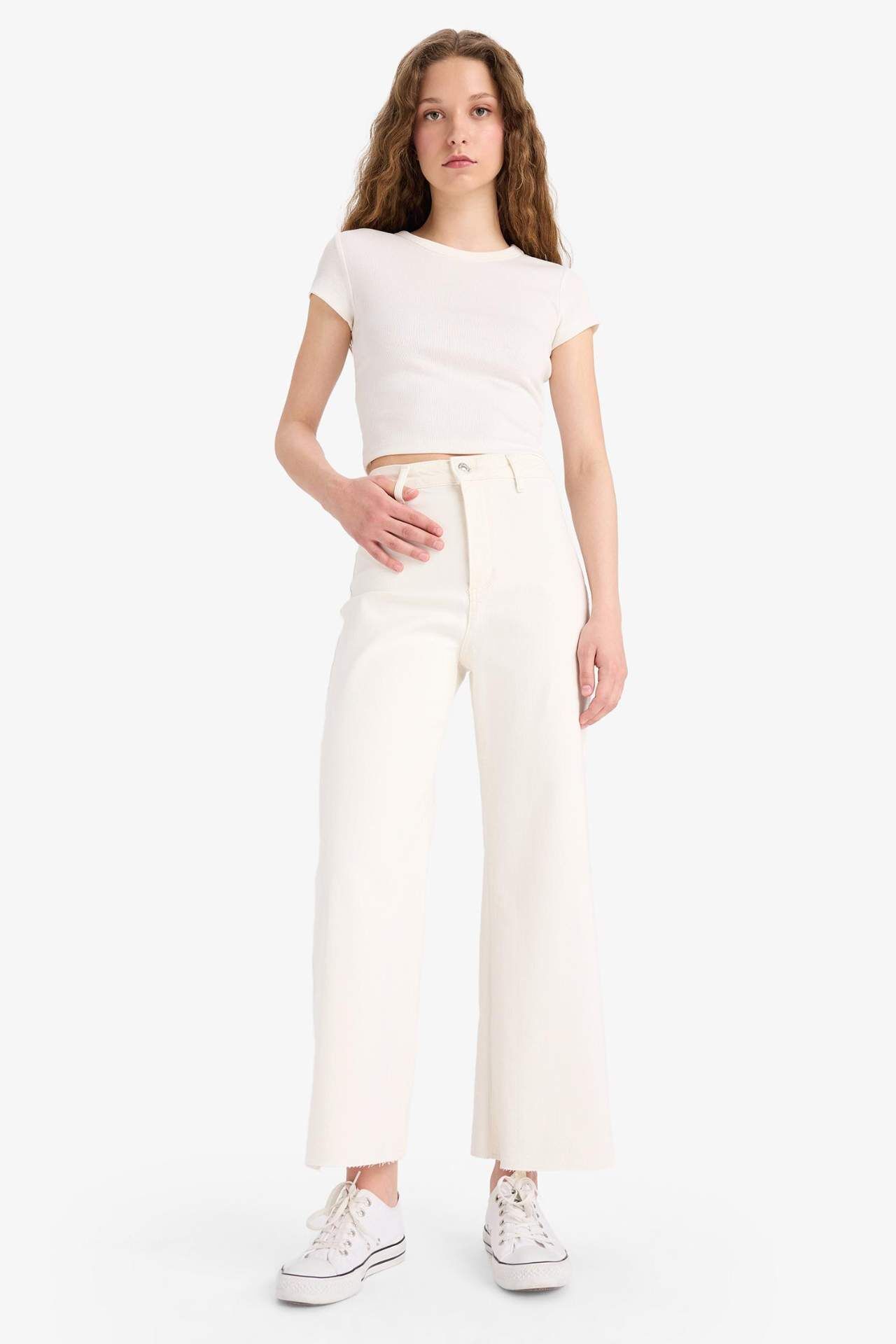 DeFacto Culotte Yüksek Bel Paça Ucu Kesik Crop Jean Pantolon