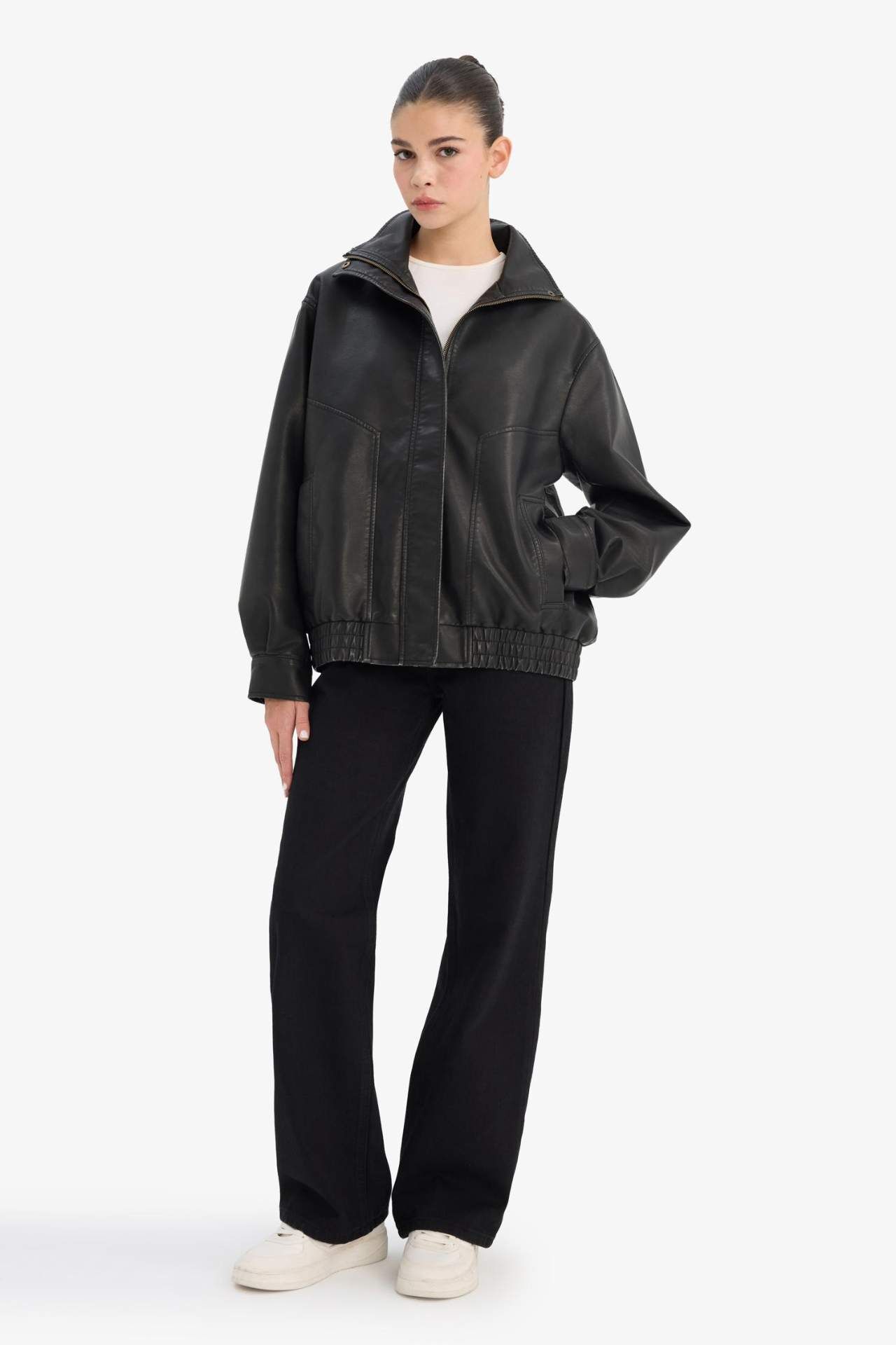 Dad Fıt Suni Deri Mont
