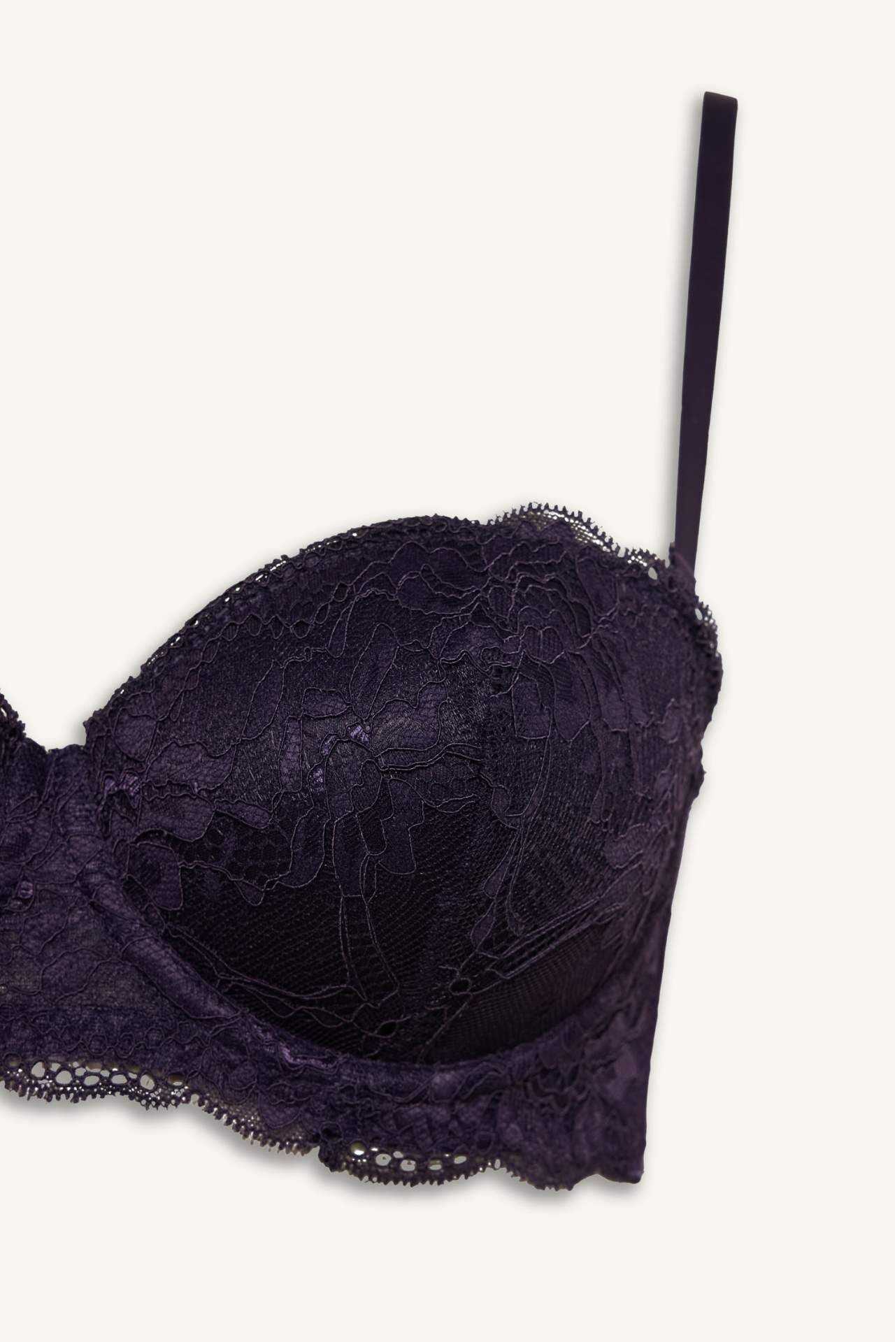 Dantel Detaylı Dantel Kaplı Yarım Dolgulu Balenli Straplez Sütyen