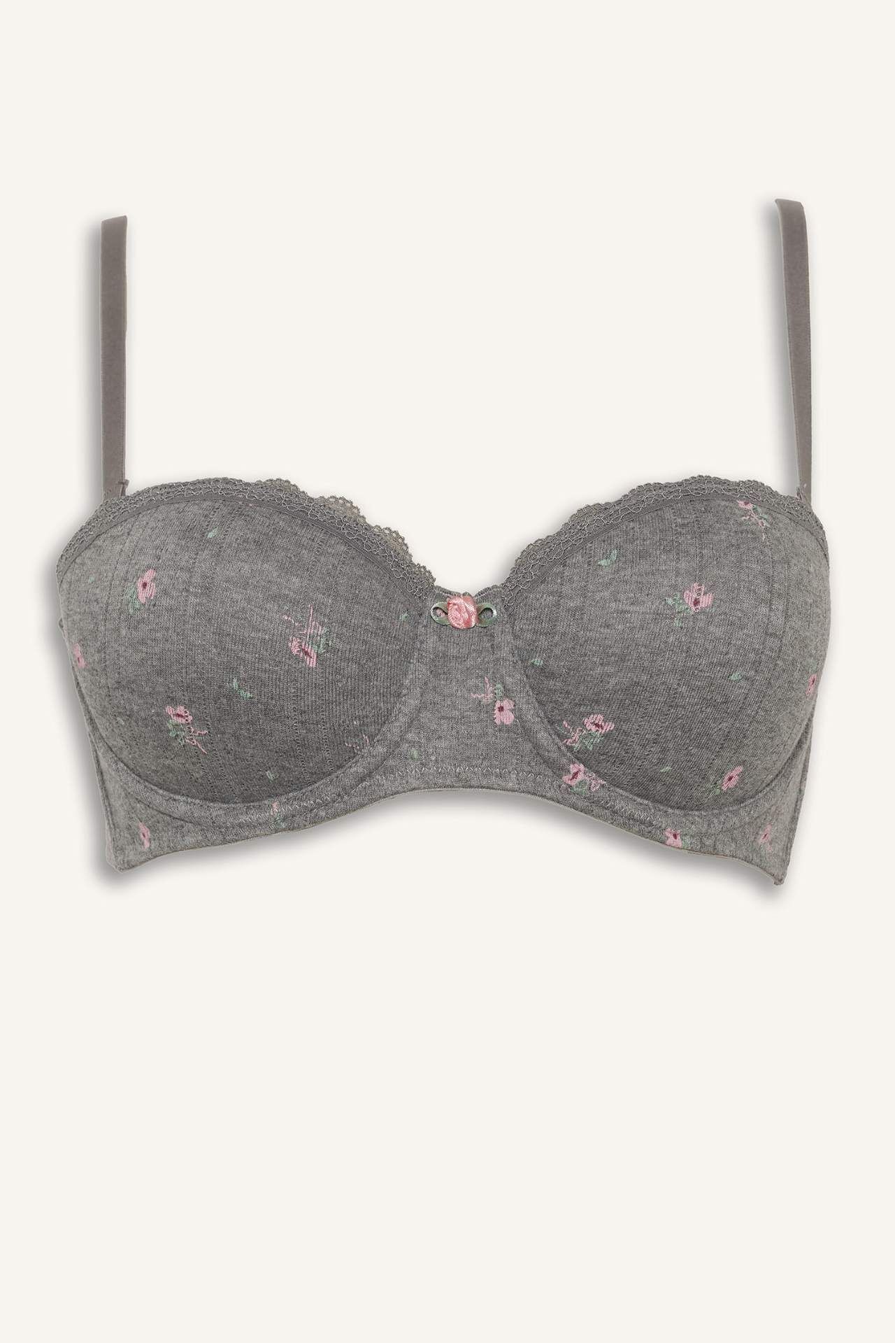 Dantel Detaylı Kaplı Pedsiz Balenli Balkonet Sütyen
