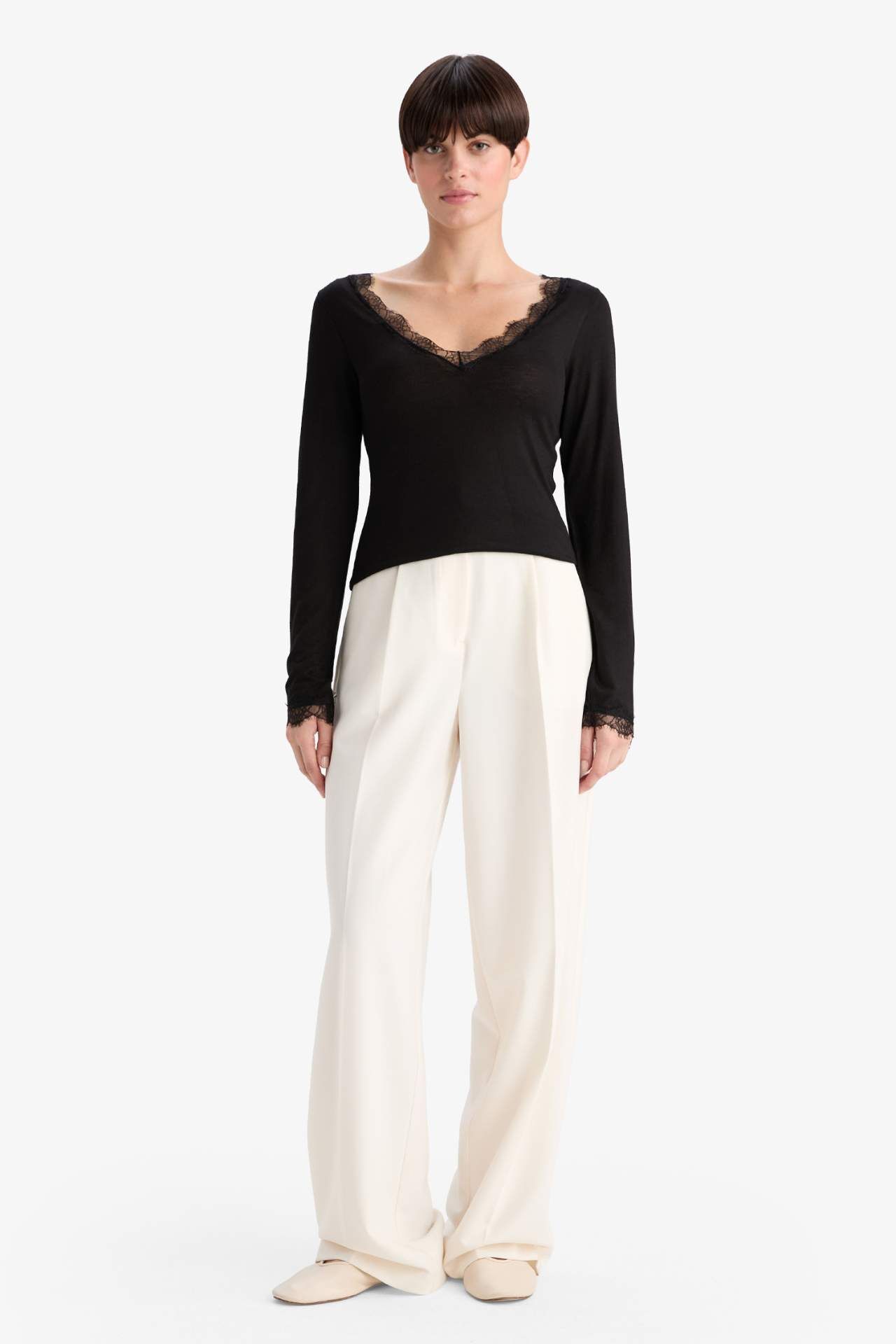 Şık dantel detaylarıyla günlük kullanıma uygun, rahat ve zarif bir uzun kollu üst. Hem rahatlığı hem de feminen dokunuşu bir arada sunar. Elastan 4%,Modal 86%,Kaşmir 10%,Elastan 4%,Modal 86%,Kaşmir 10%