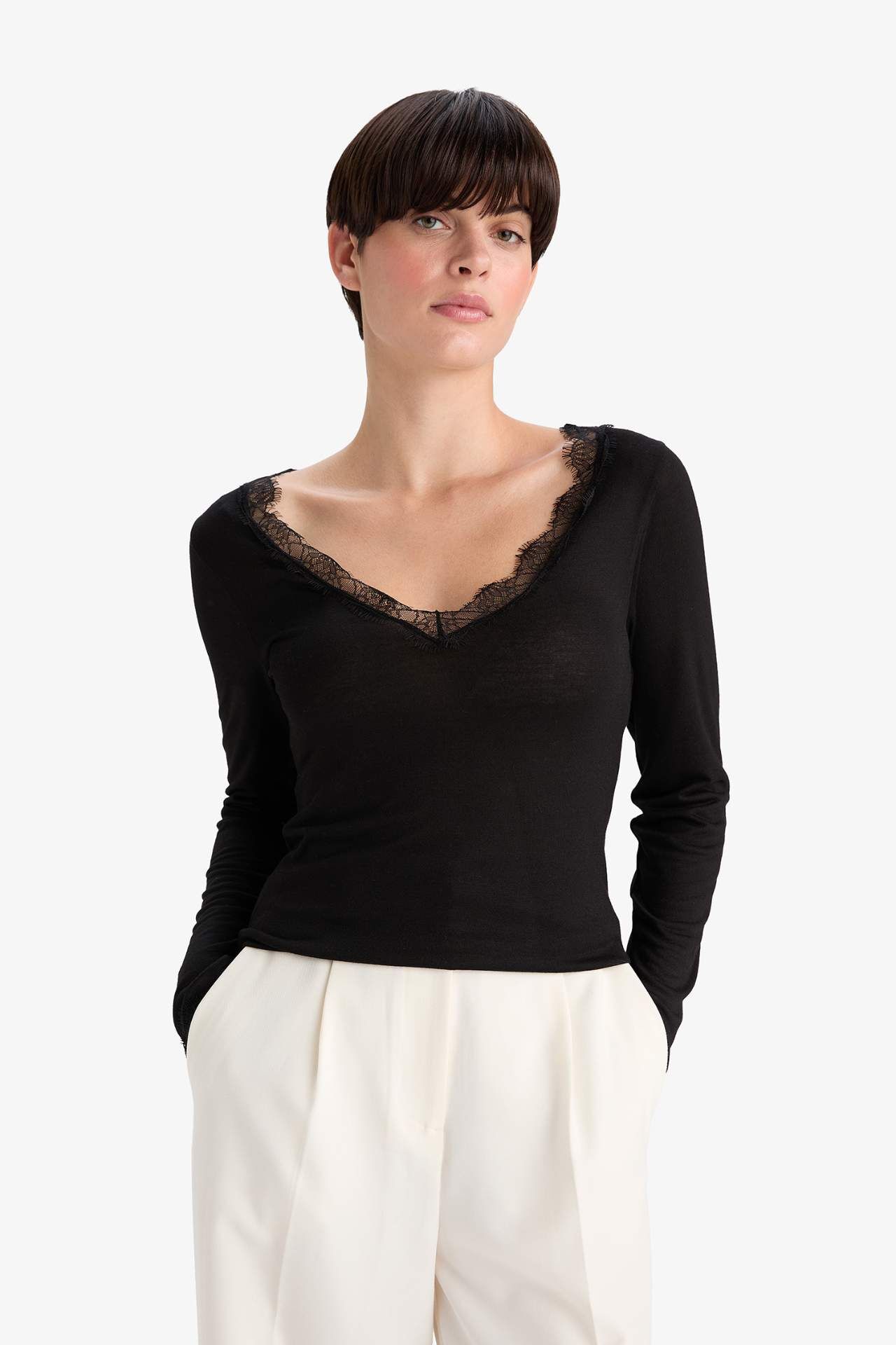 DeFacto Dantel Detaylı Uzun Kollu Üst-Fall in Love