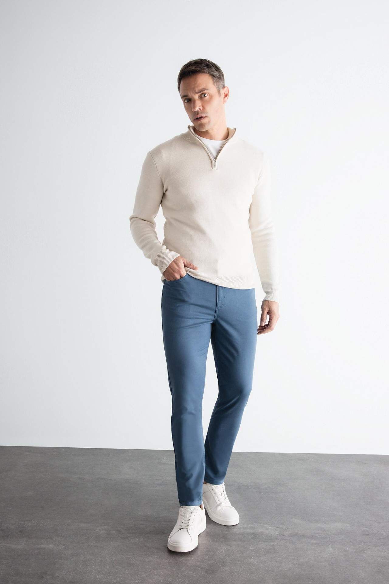 Şık ve rahat Dar Paça Chino Kanvas Pantolon, gardırobunuzun vazgeçilmezi olmaya aday. Yüksek kaliteli kumaşı ve şık tasarımıyla her tarza uyum sağlar. Hem iş hayatında hem de günlük kullanımda şıklığınızı tamamlar. Bu sezonun trendlerine uyum sağlayan bir parça. Pamuk 98%,Elastan 2%,Pamuk 98%,Elastan 2%