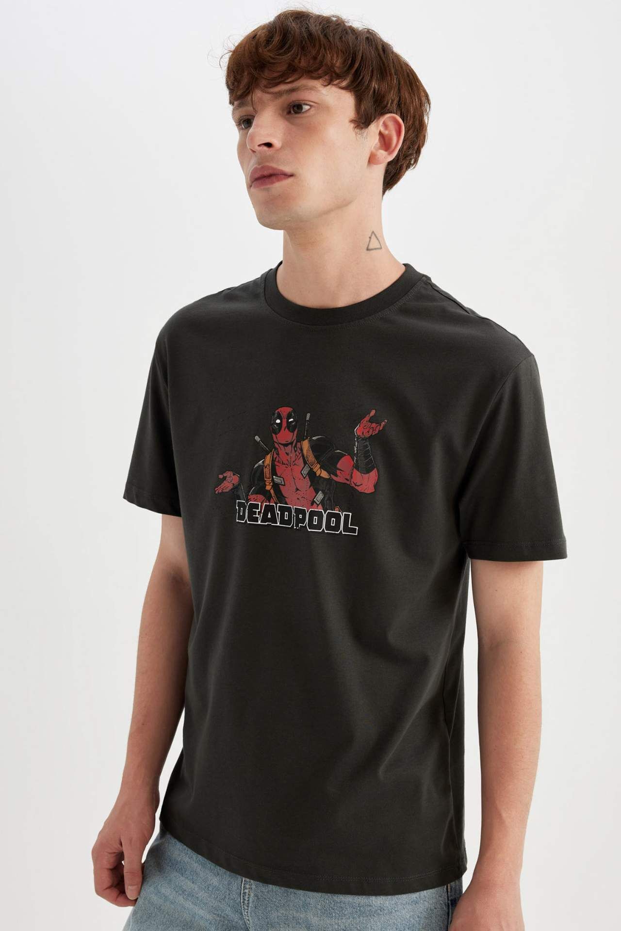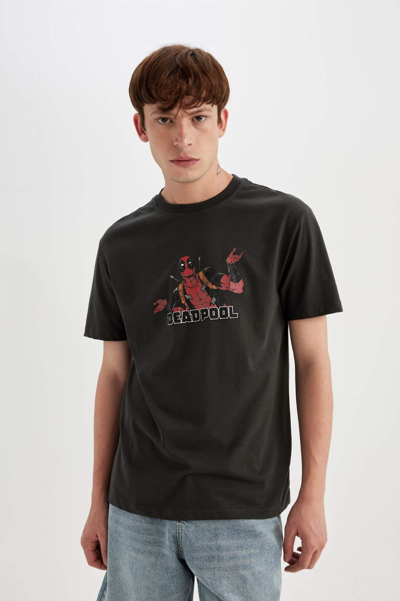 DeFactoFit Deadpool Regular Fit Bisiklet Yaka Baskılı Kısa Kollu Tişört