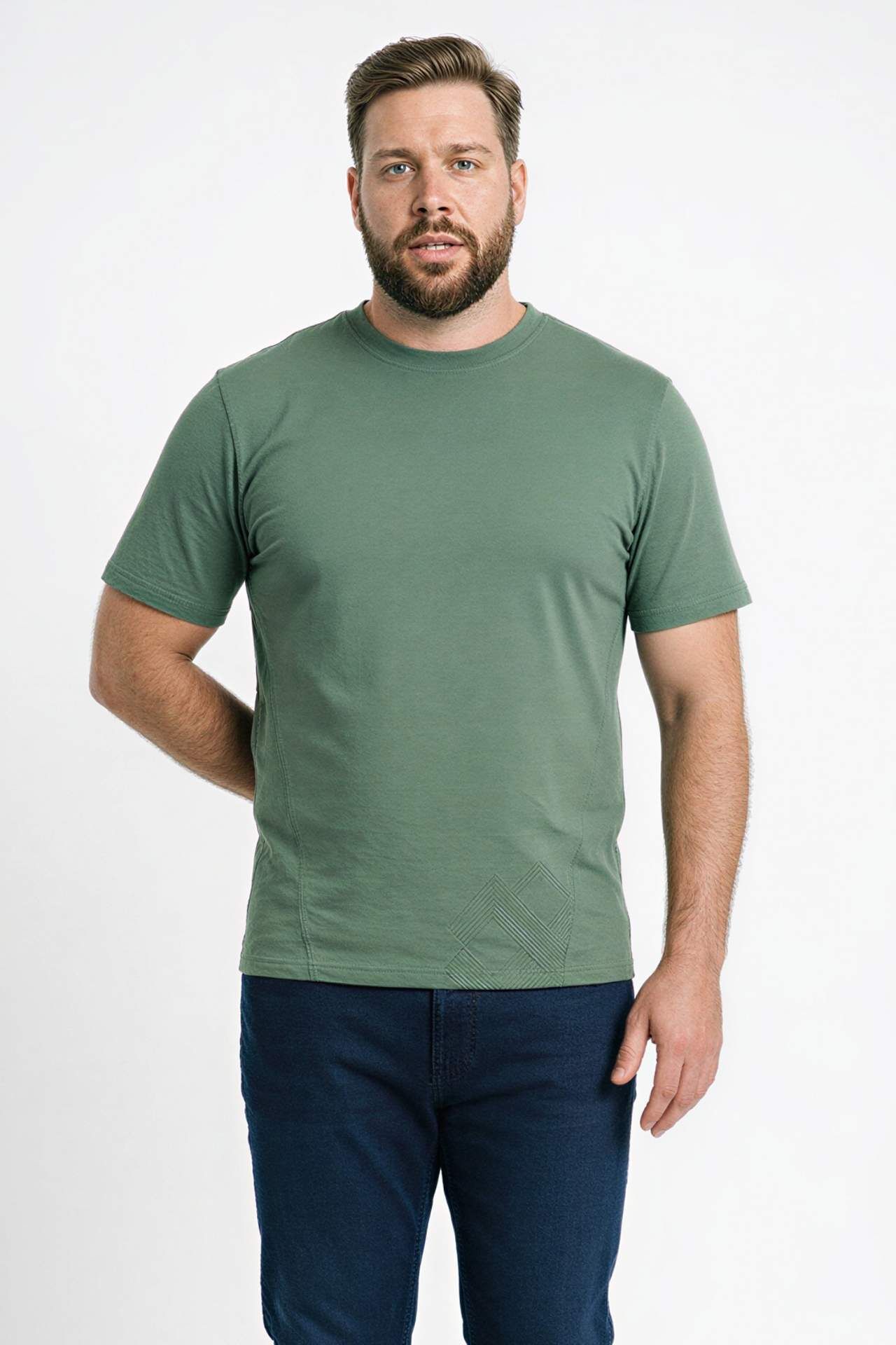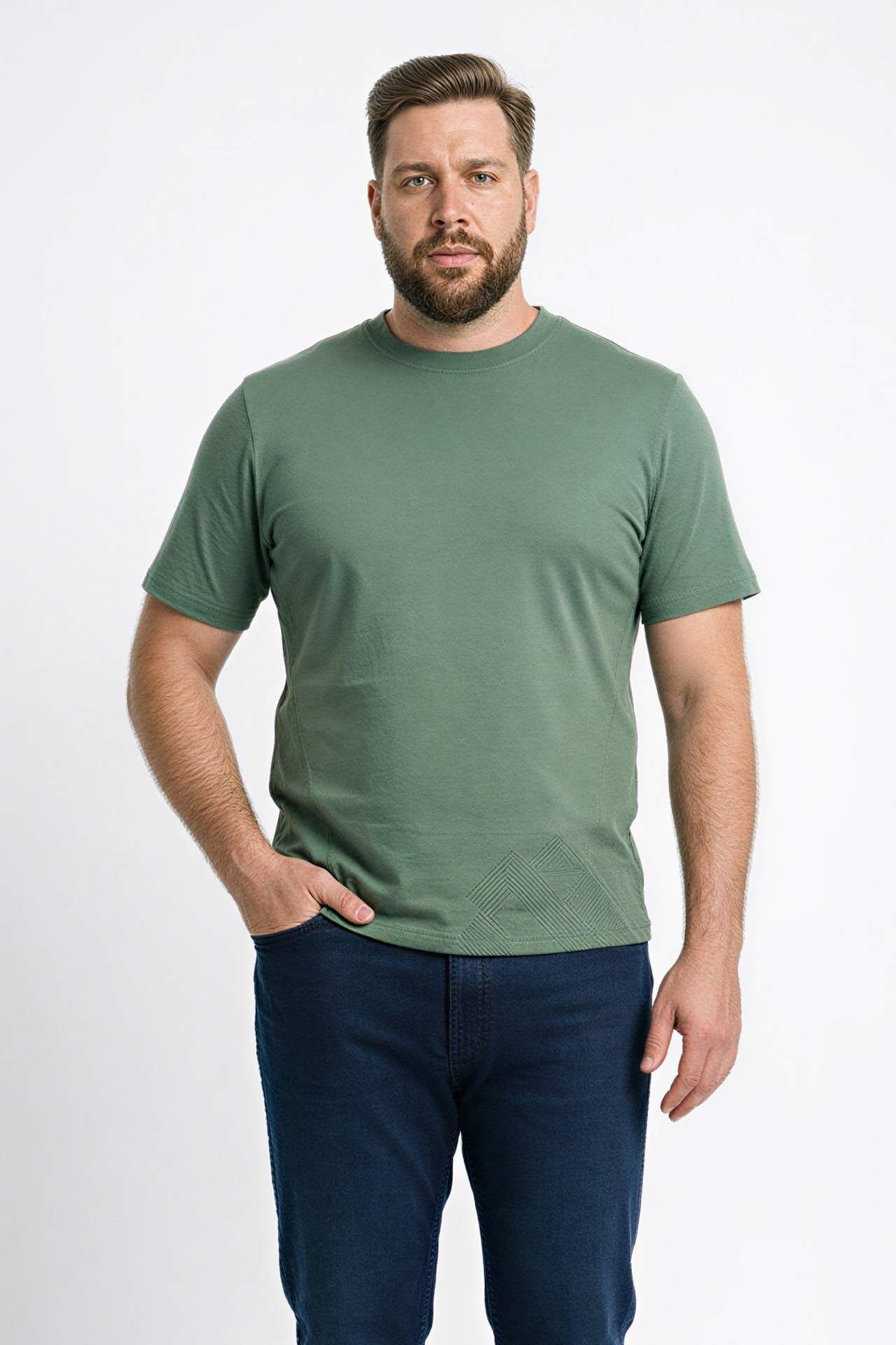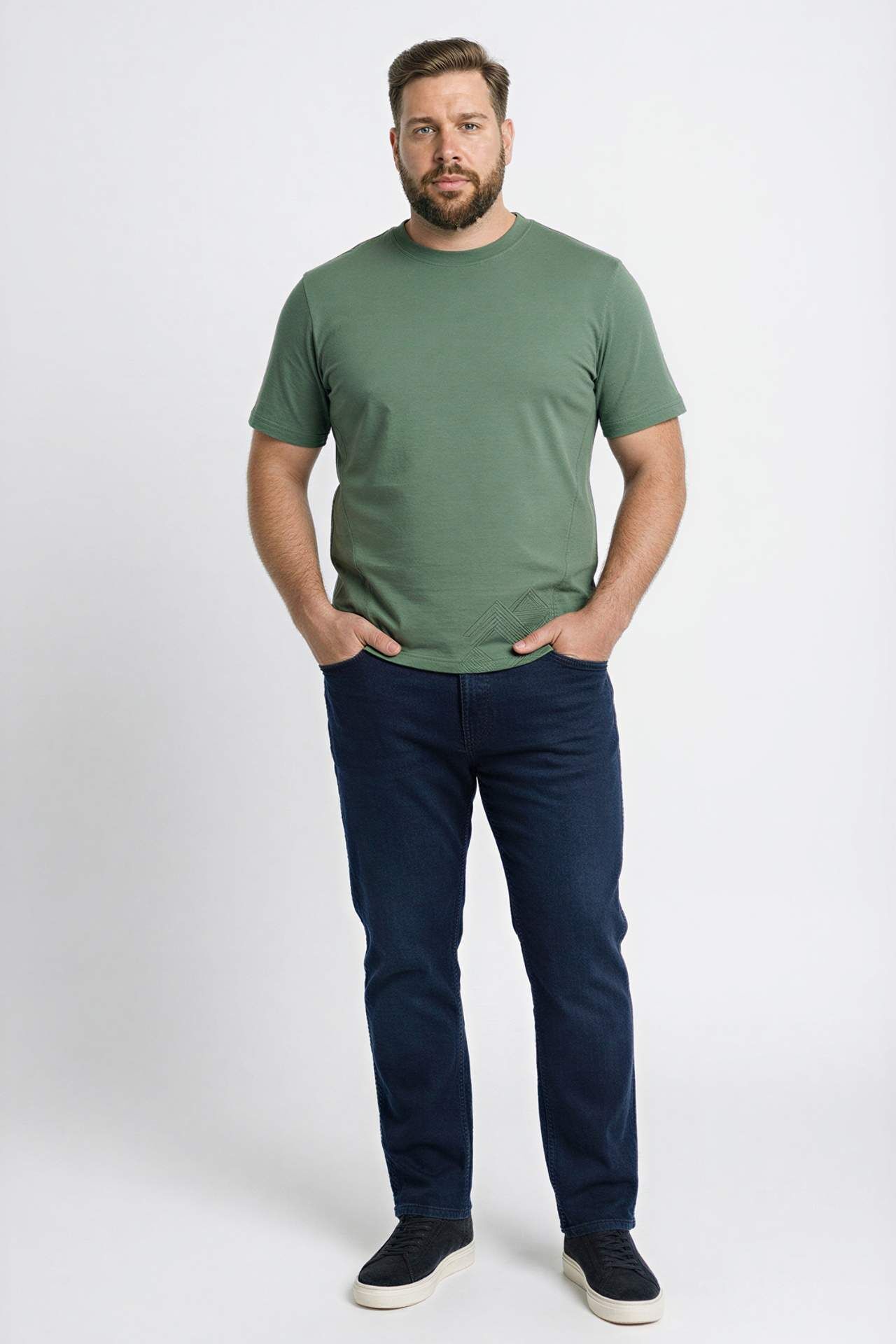 Modern ve dengeli bir silüet sunan büyük beden kesimiyle üstün konforu şıklıkla birleştirir. %100 pamuk liflerinin sağladığı doğal yumuşaklık ve yüksek nefes alabilirlik, vücut hatlarını kısıtlamayan rahat kalıbıyla birleşerek en sıcak günlerde bile cildinizin ferah kalmasını ve gün boyu özgür bir kullanım sunar. Pamuk 100% Manken Bedeni: Göğüs: 117 Boy: 1,85 Basen: 102 Bel: 121