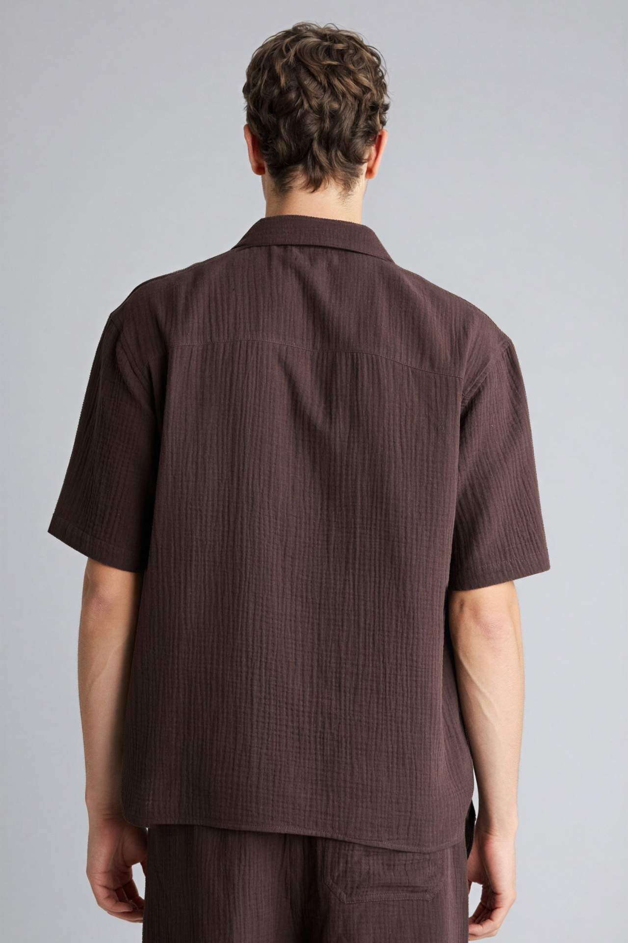 Pamuklu, kısa kollu, düğmeli gömlek. Kamp yaka. Pamuk 100% Manken Bedeni: Göğüs: 100 Boy: 1,9 Basen: 101 Bel: 84
