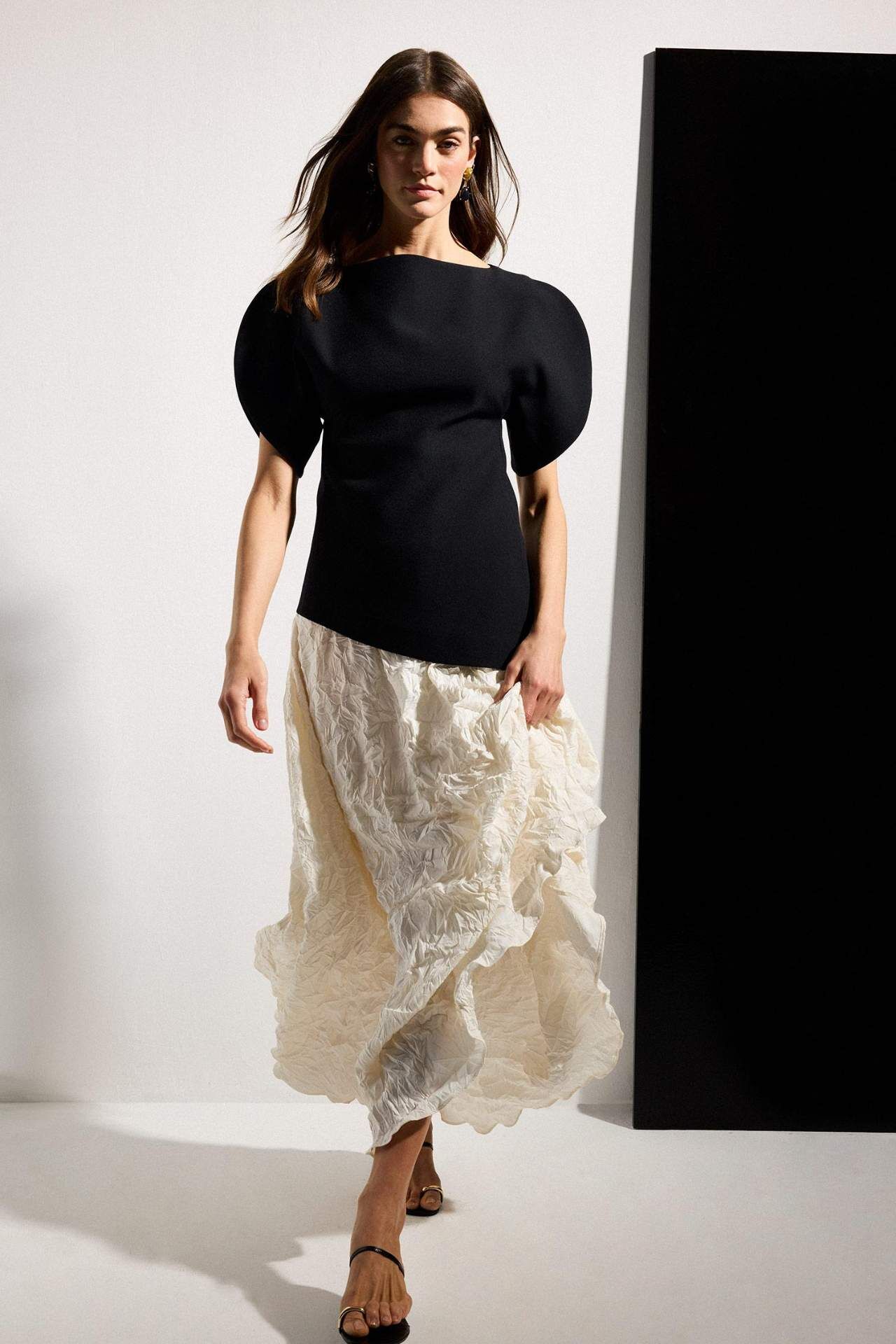 Fıtted Kayık Yaka Krep Bluz. Doğal dokulu kumaş. Minimalist silüet. Gardırobun zamansız parçası. Poliester 100%,Elastan 7%,Poliester 93% Manken Bedeni: Göğüs: 89 Boy: 1,78 Basen: 92 Bel: 63