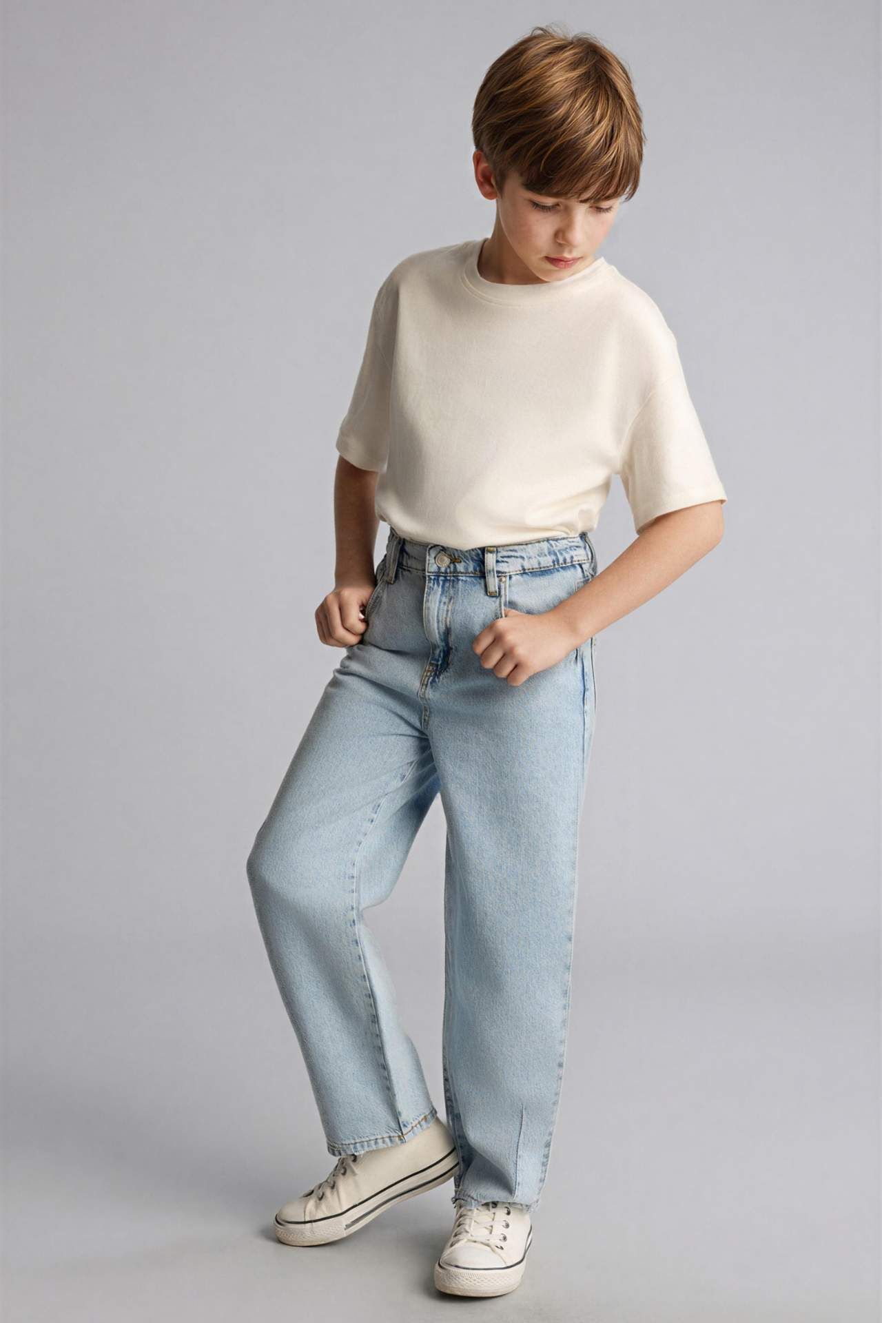 Balloon Fıt Düz Paça Pamuklu Erkek Çocuk Pantolon Pamuk 100% Manken Bedeni: Göğüs: 0 Boy: 1,28 Basen: 0 Bel: 0