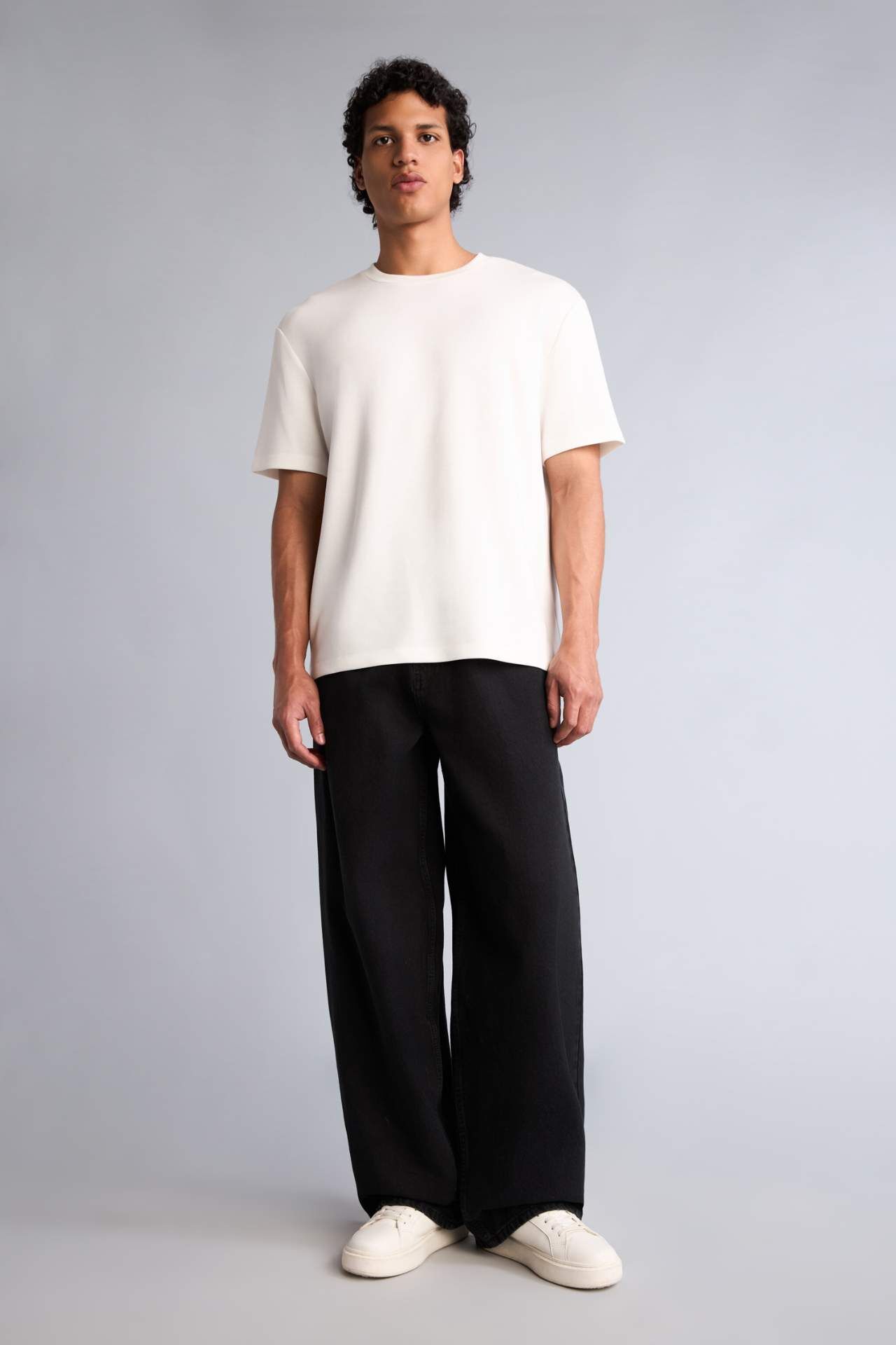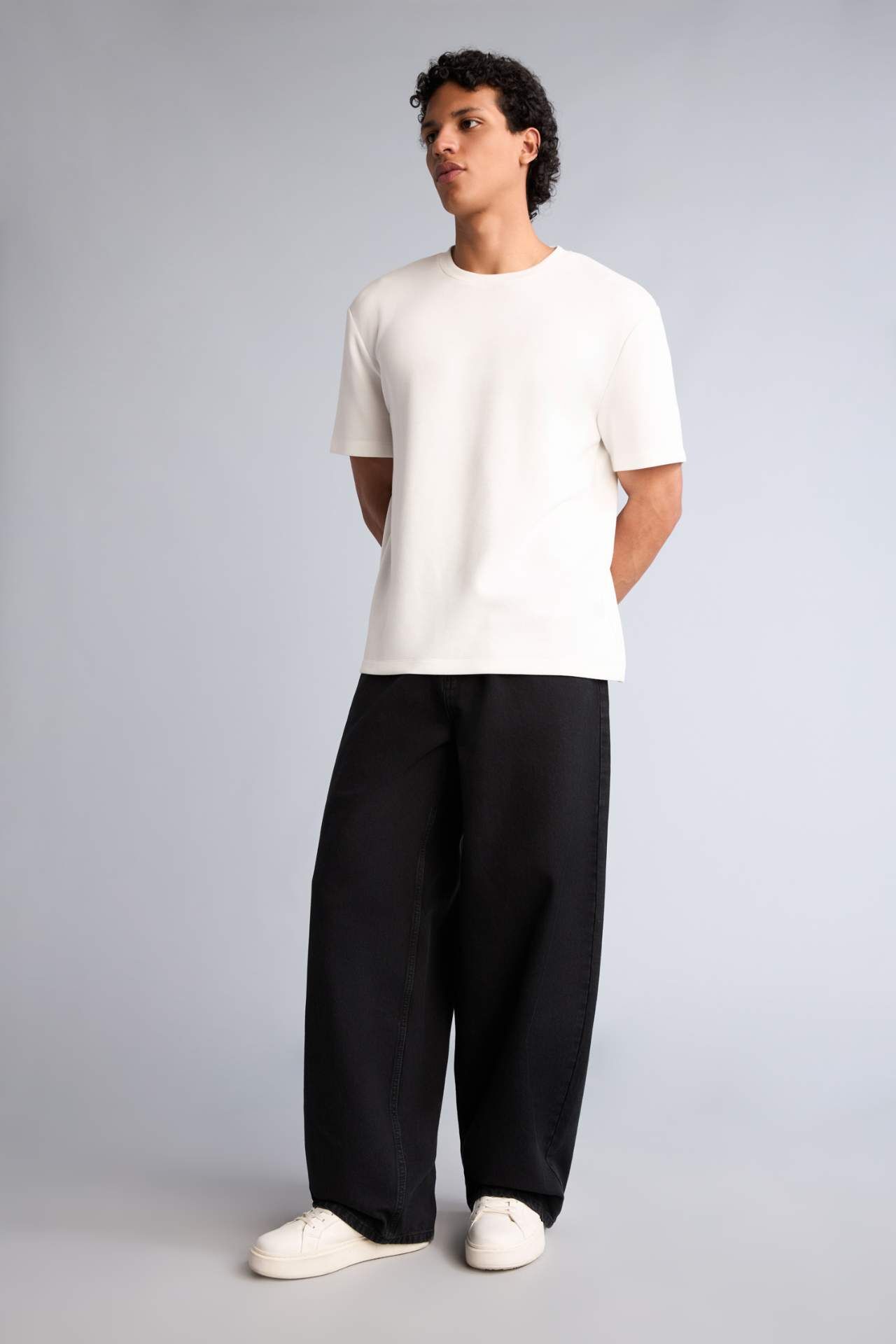 Siyah balloon fit pantolon. Geniş paça ve kuşak köprü detaylı. Pamuk 100% Manken Bedeni: Göğüs: 98 Boy: 1,84 Basen: 96 Bel: 78