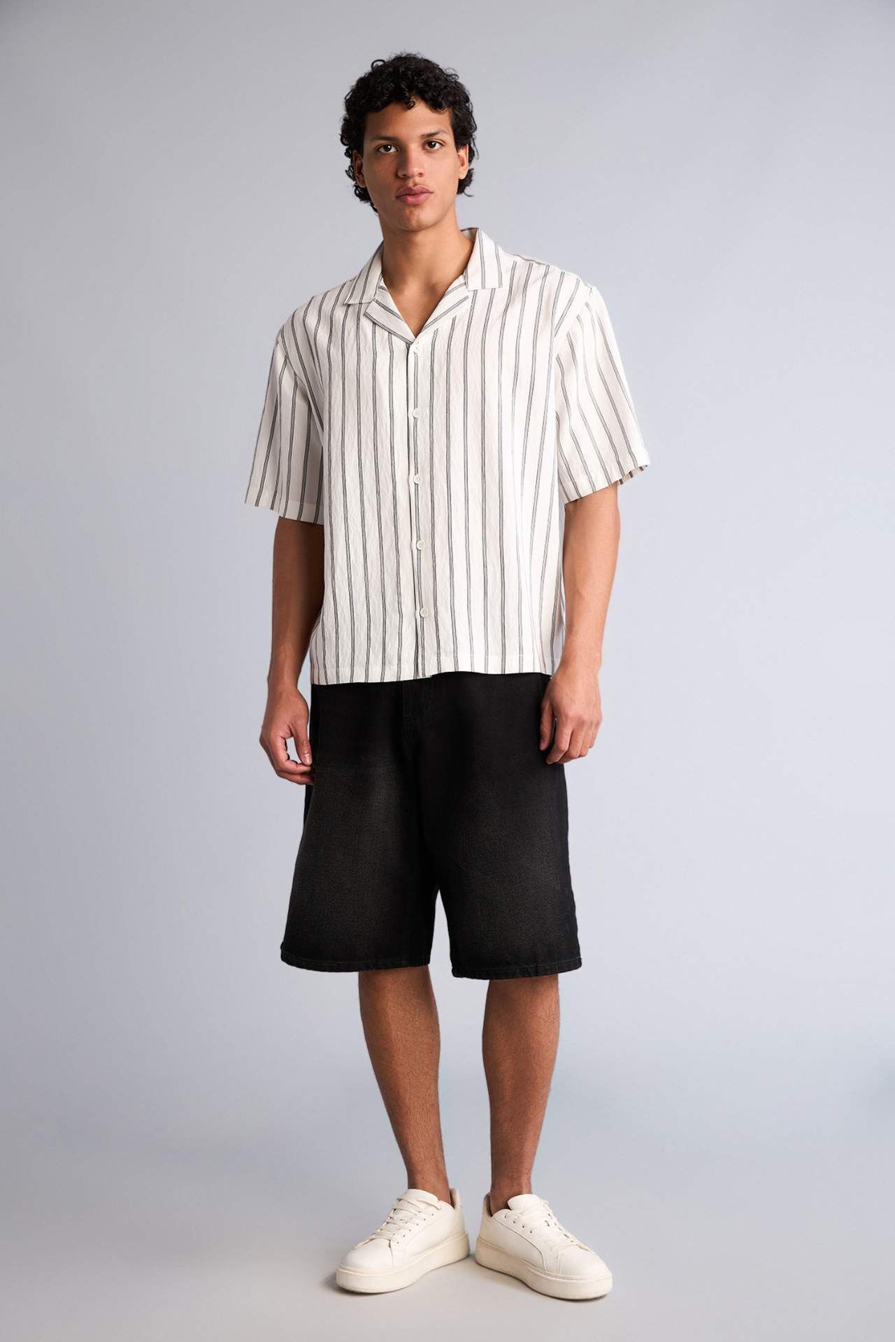 DeFacto Boxy Fıt Apaş Yaka Kısa Kollu Gömlek