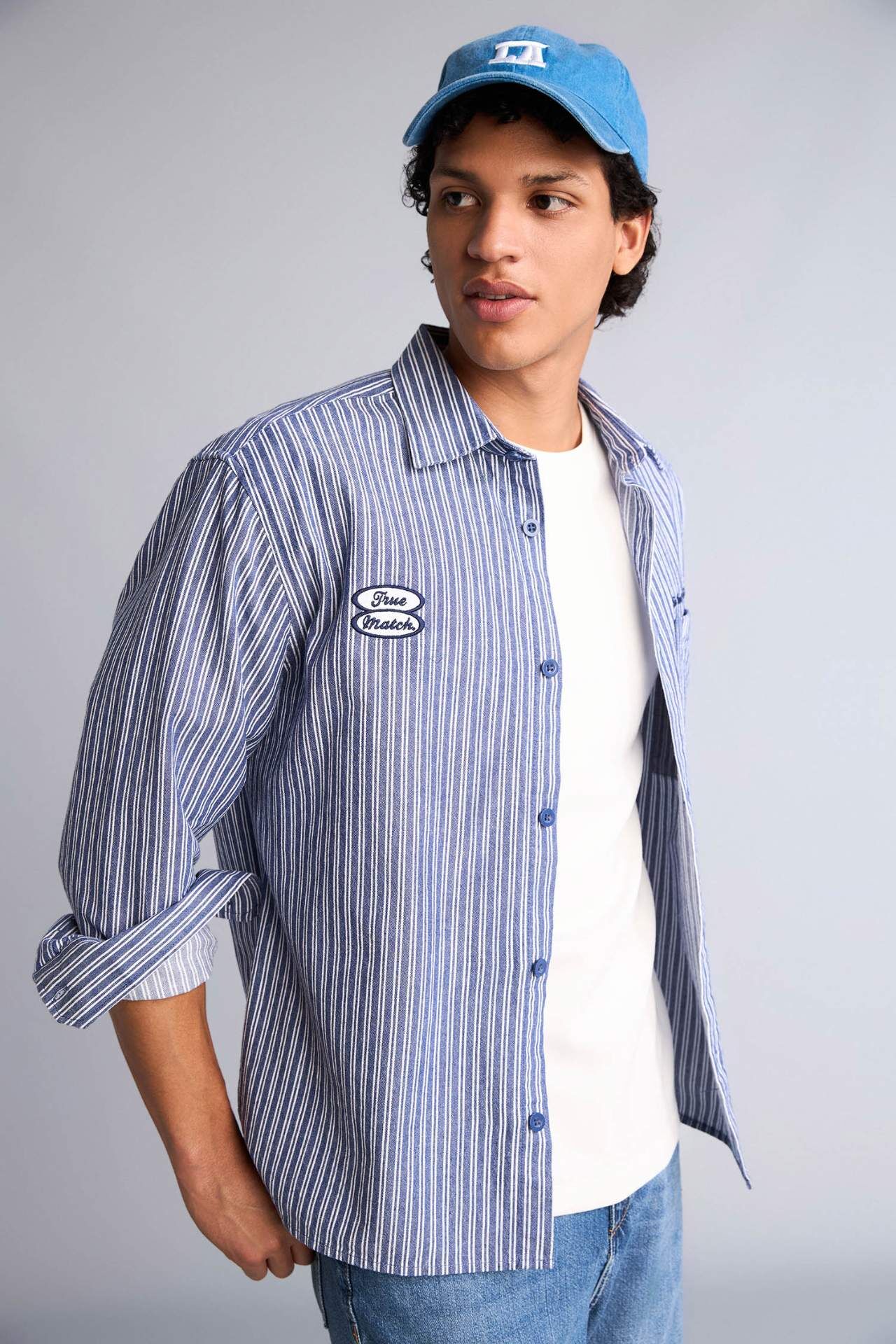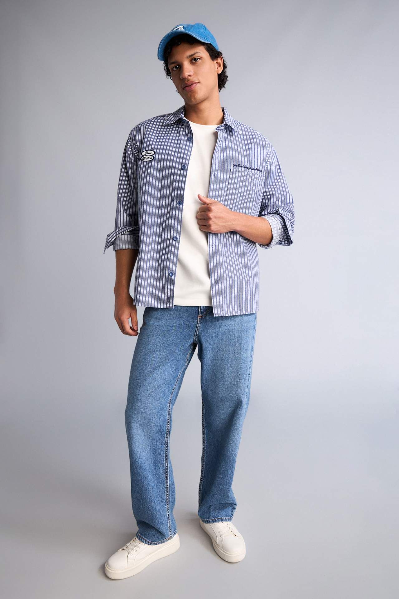 DeFacto Boxy Fıt Gömlek Yaka Uzun Kollu Gömlek