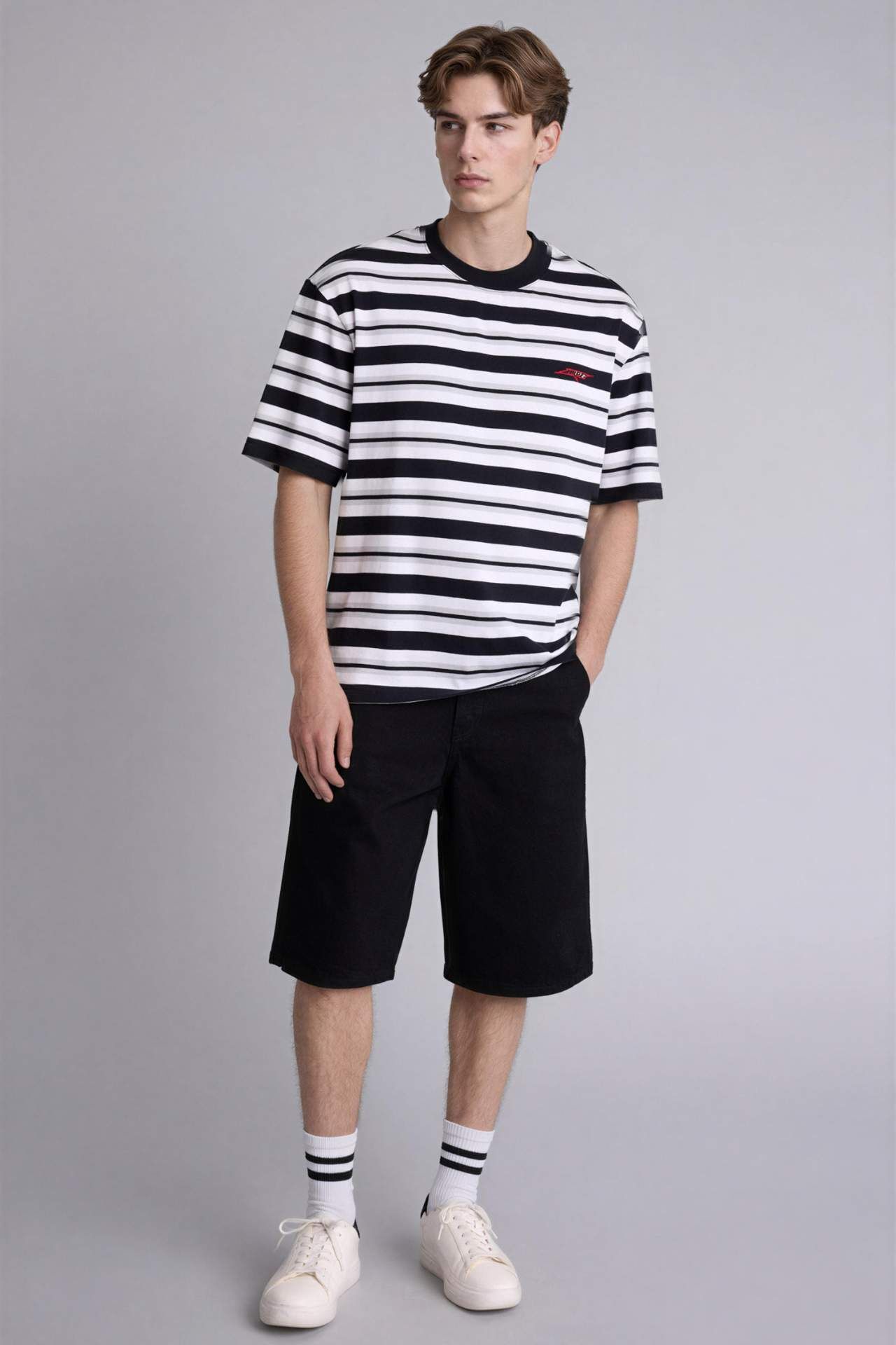Geniş ve kare kesimli Boxy Fit silüetiyle modern sokak stiline uygun, eforsuz bir duruş sunar. Omuzlardan hafif dökümlü yapısı ve nefes alabilen kaliteli pamuklu dokusuyla birleşerek, gün boyu hem hareket özgürlüğü hem de serin tutan konforlu bir kullanım sağlar. Pamuk 100% Manken Bedeni: Göğüs: 96 Boy: 1,81 Basen: 95 Bel: 75