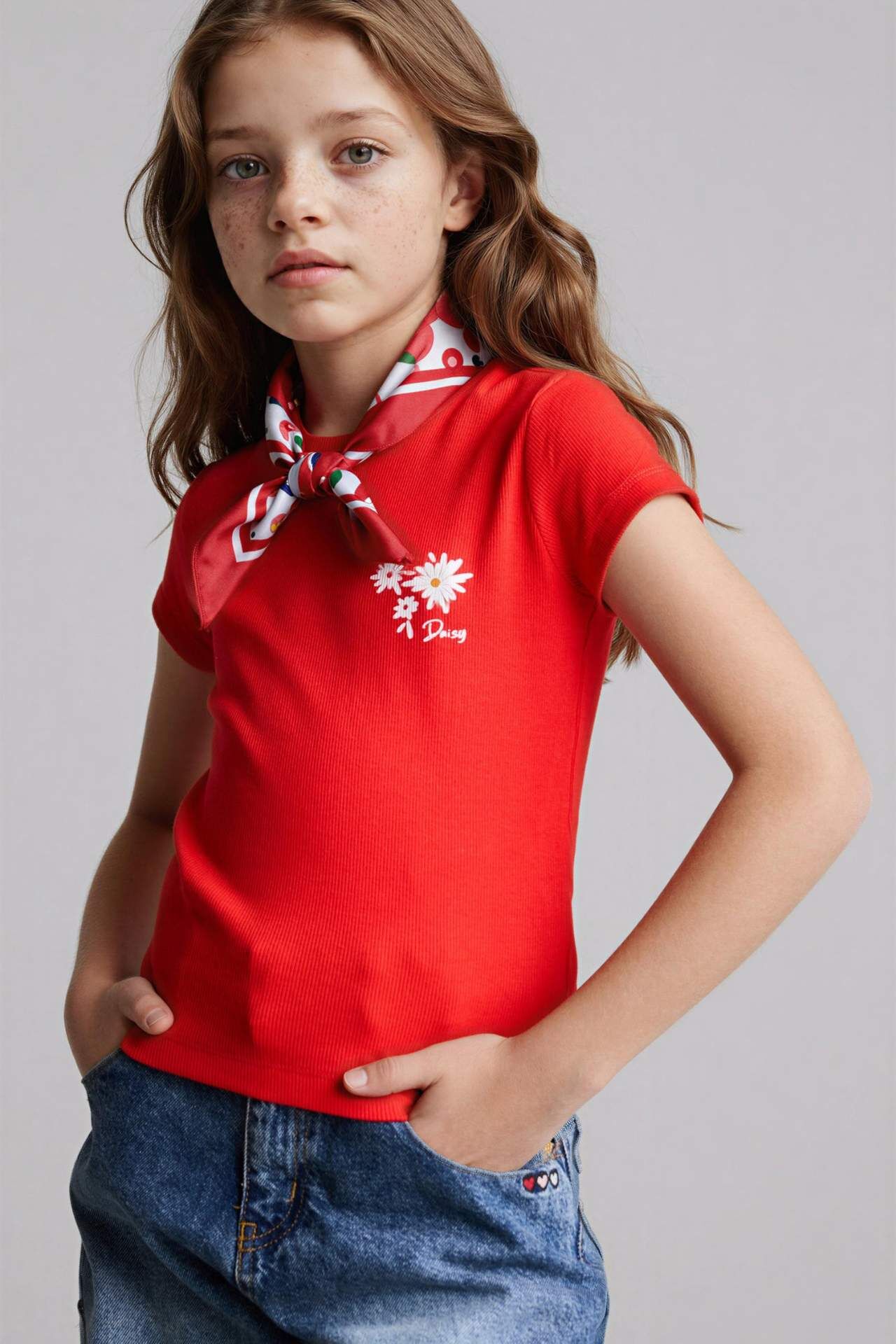 DeFacto Çiçekli İşlemeli Tişört Kız Çocuk
