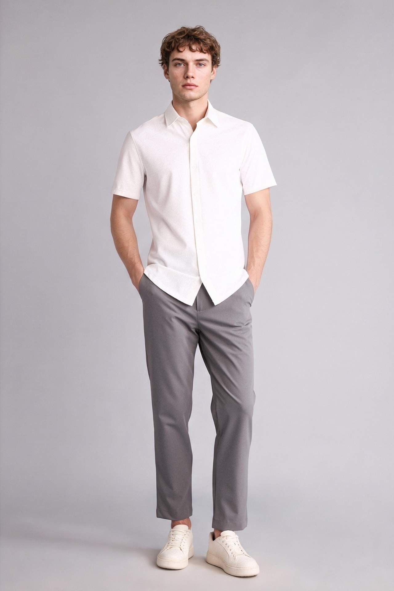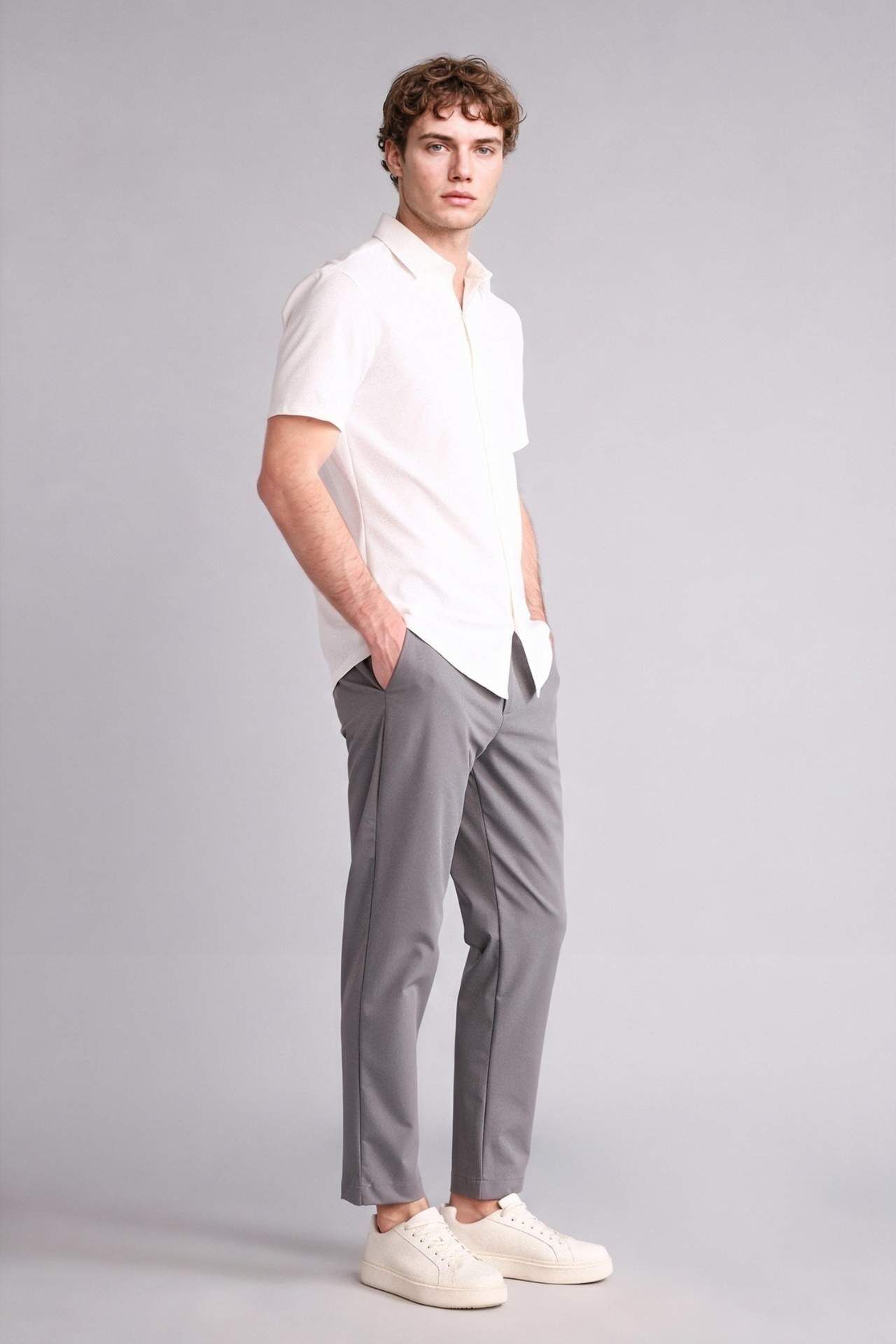Esnek kumaştan tailored fit pantolon. Yan cepler ve kemer köprüleri. Bilek boyu. Poliamid 88%,Elastan 12% Manken Bedeni: Göğüs: 98 Boy: 1,88 Basen: 98 Bel: 78