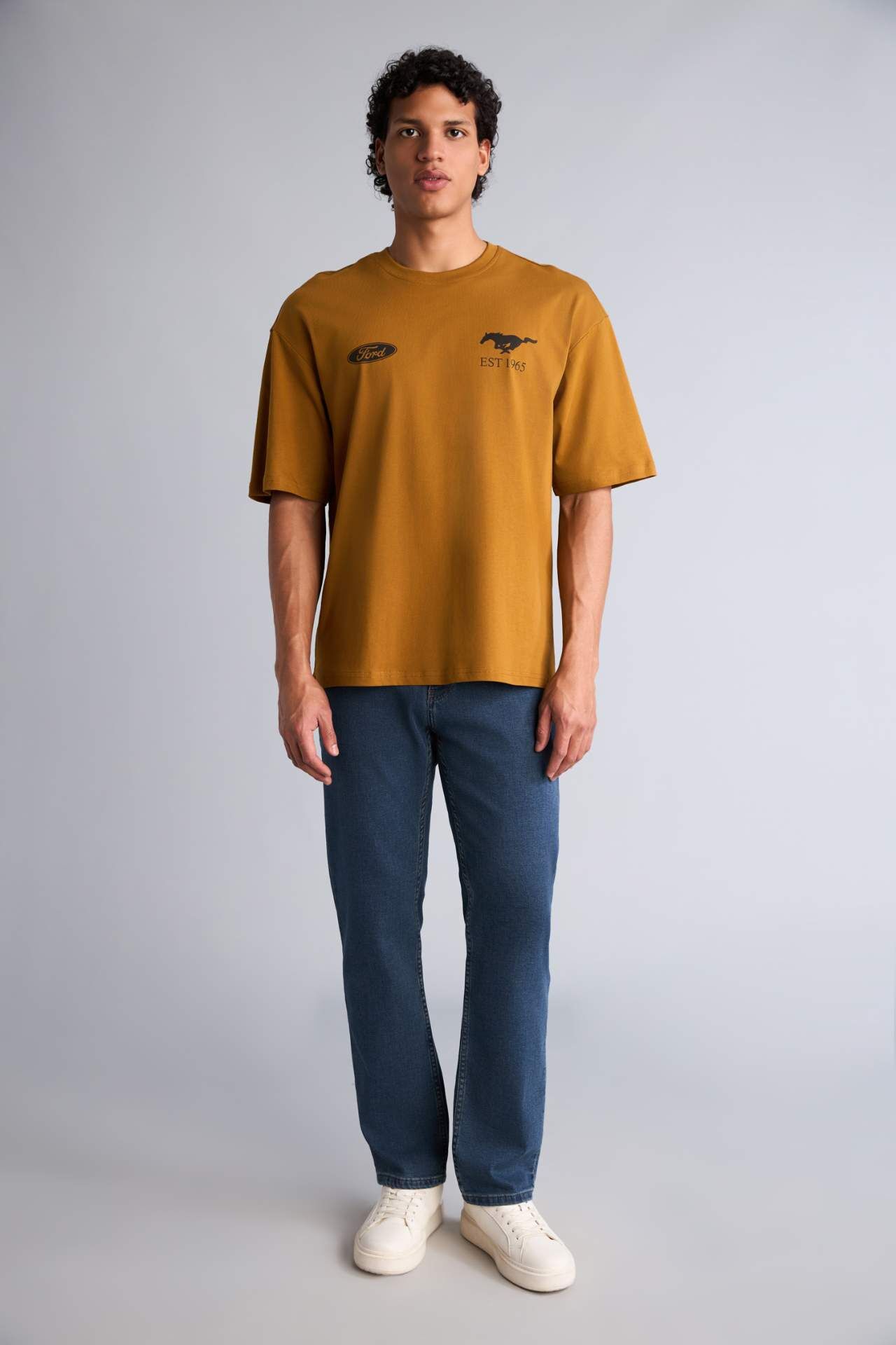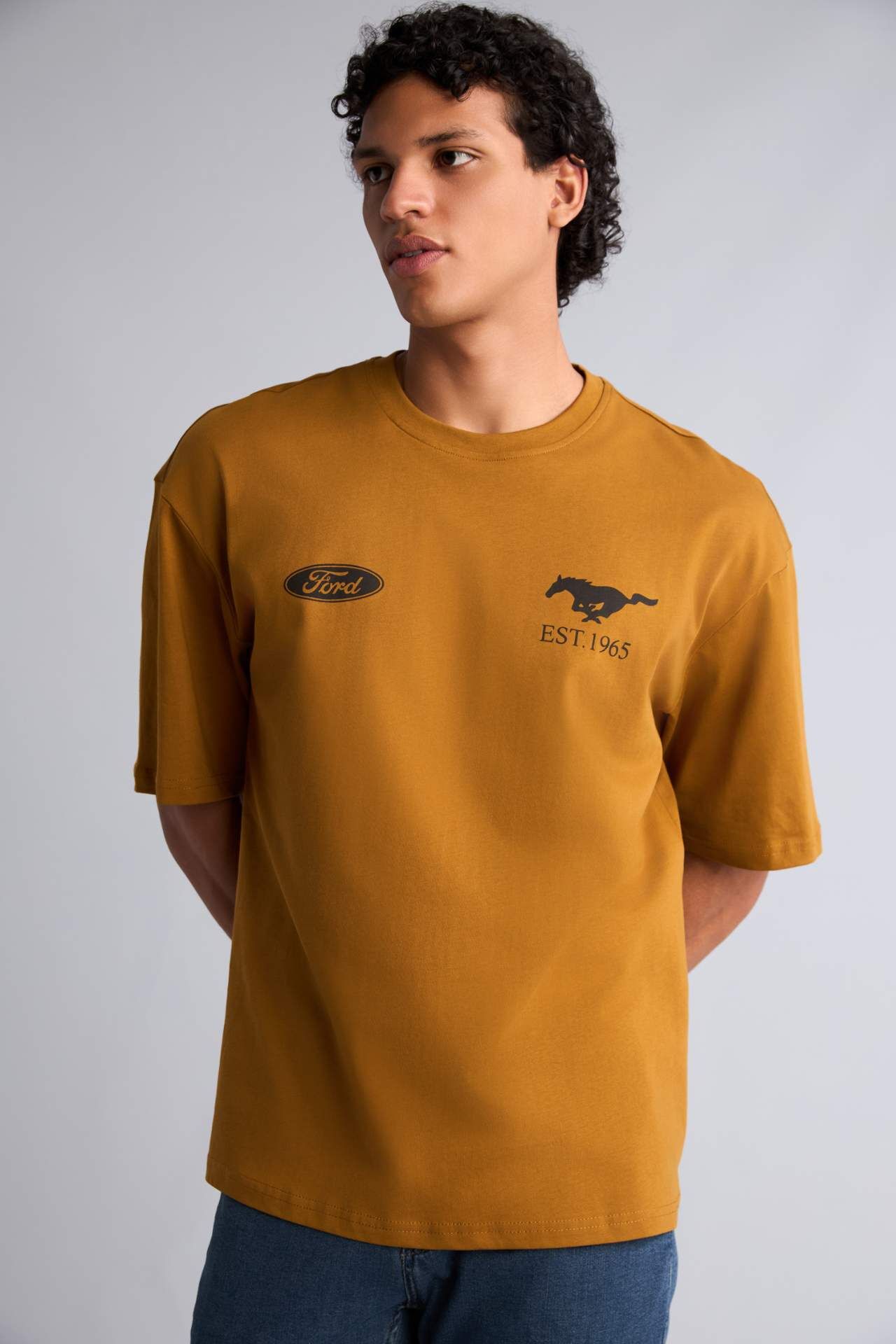 DeFacto Ford Motor Company Boxy Fıt Bisiklet Yaka Baskılı Kısa Kollu Tişört