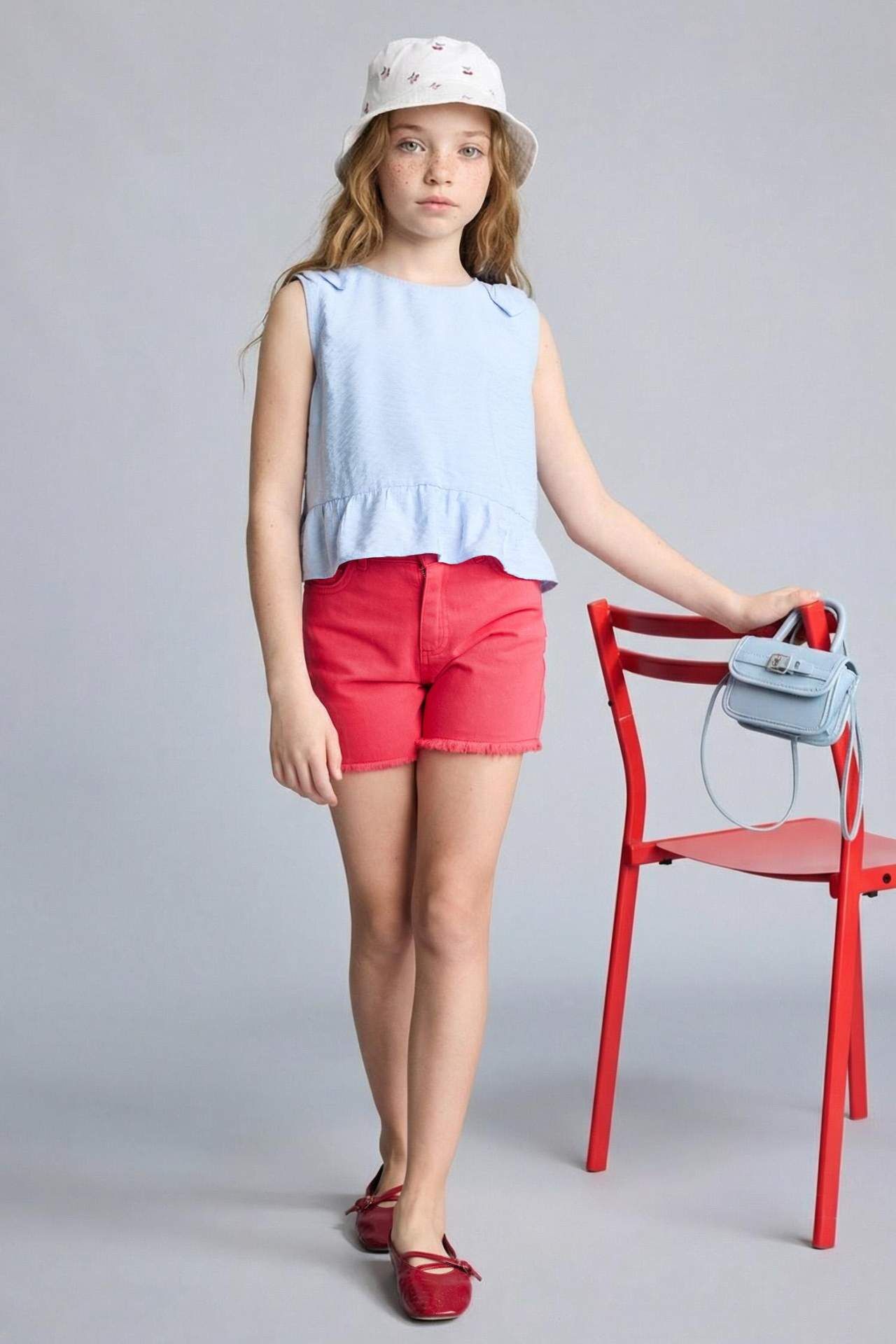 Çocuklar için kız çocuk şortları arasından seçim yaparken, yaz için ideal olan kırmızı gabardin şortları tercih edebilirsiniz. Kısa paça detayıyla dikkat çeken bu temel çeşit ürünler, dokuma pantolon kategorisinde yer almaktadır. Kısa boylu çocuklar için ideal bir seçenektir. Pamuk 100% Manken Bedeni: Göğüs: 62 Boy: 1,24 Basen: 73 Bel: 53
