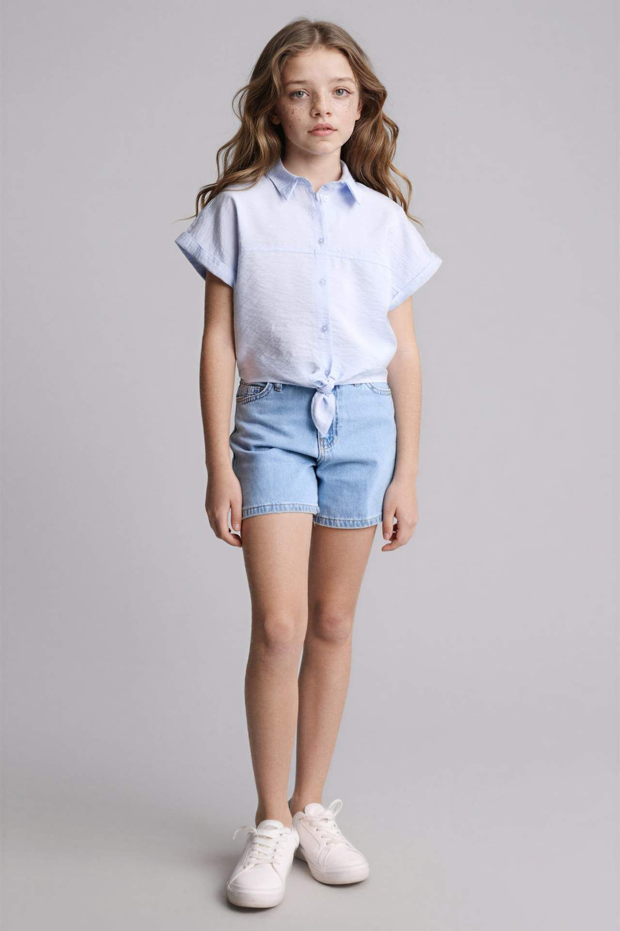 Kız çocuk regular fit kısa kollu gömlek, rahat kesimi ve hafif kumaşıyla gün boyu konfor sağlar. Klasik ve sade tasarımı sayesinde hem günlük hem de özel kombinlerde şık bir görünüm sunar. Hareket özgürlüğü sağlayan yapısı, çocukların rahatça hareket etmesine olanak tanır. Poliamid 15%,Viskoz 85% Manken Bedeni: Göğüs: 0 Boy: 1,34 Basen: 0 Bel: 0