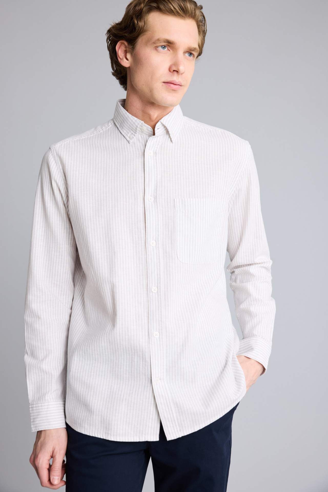 DeFacto Keten Karışımlı Uzun Kollu Gömlek