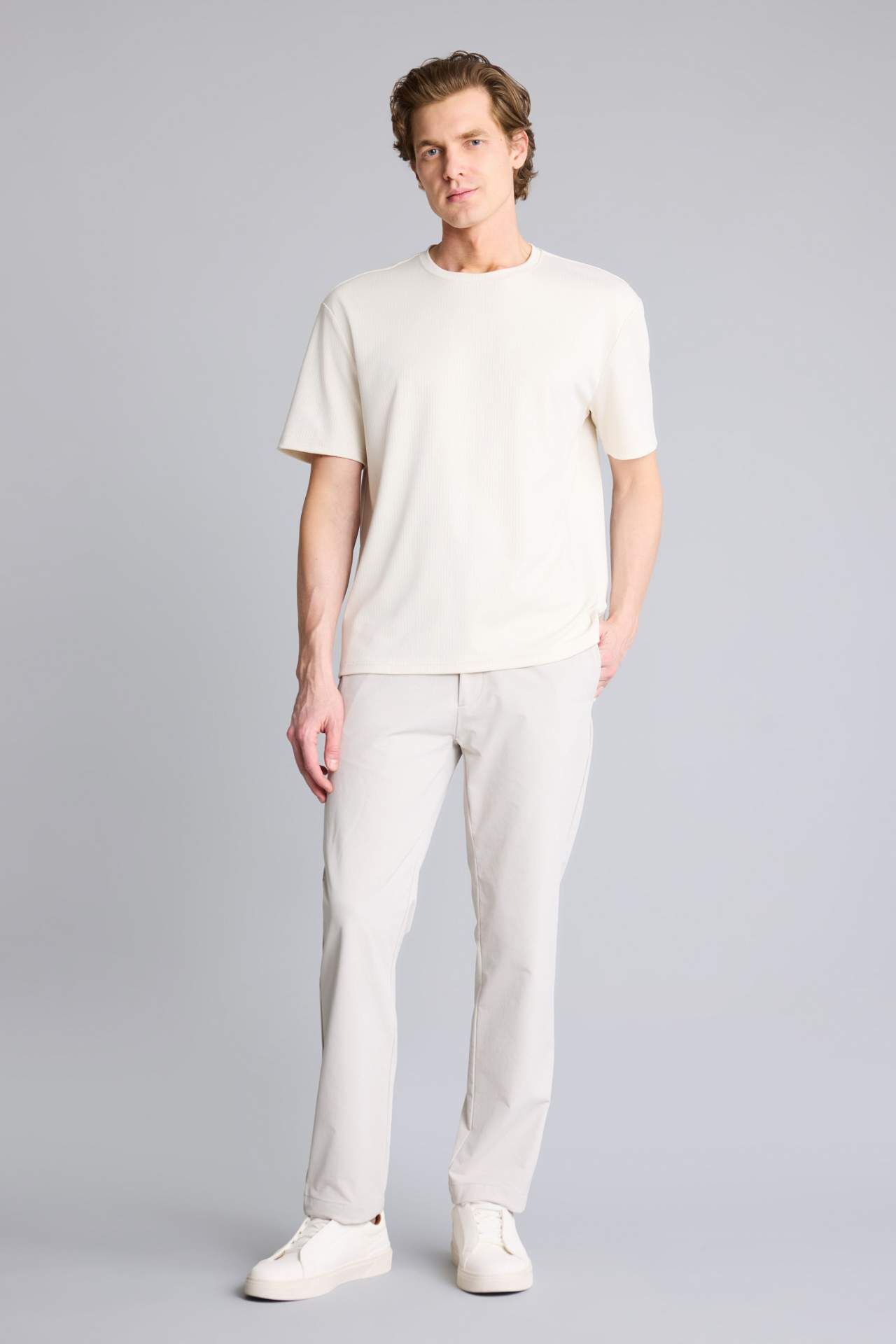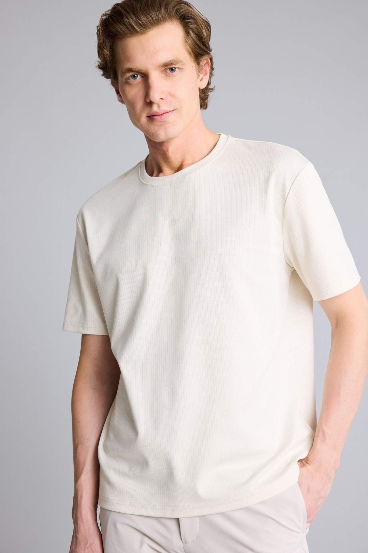 Modern ve yalın bir silüet sunan tasarımıyla konforu şıklıkla birleştirir. Gardırobun en temel parçası olan bu kısa kollu model, nefes alabilen hafif dokusuyla her tarza uygun bir kullanım sunar. Elastan 7%,Poliester 93% Manken Bedeni: Göğüs: 98 Boy: 1,86 Basen: 99 Bel: 78