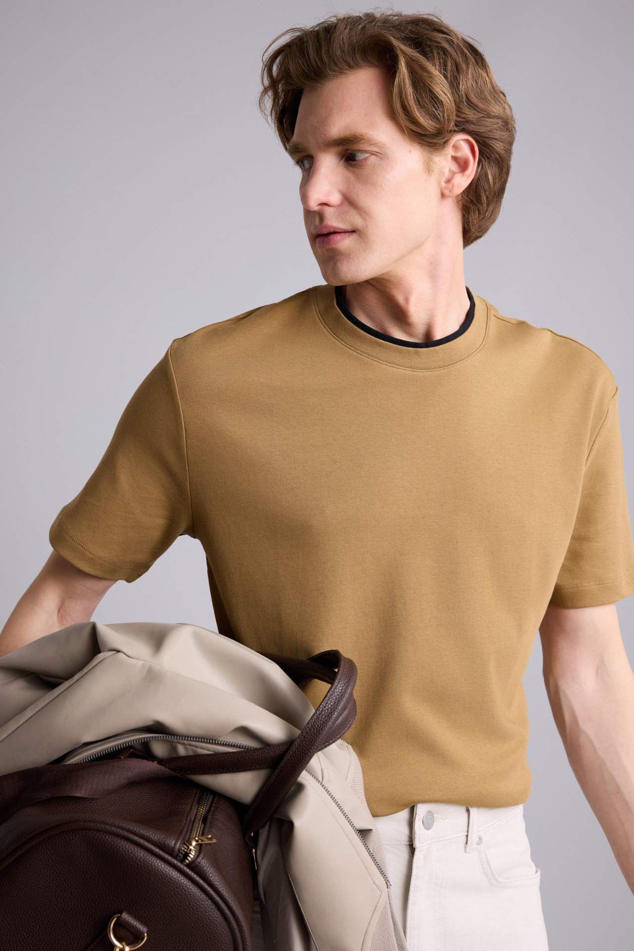 Zamansız ve çok yönlü tasarımıyla her gardırobun temel parçası olan bu model, standart kesimiyle dengeli bir silüet sunar. Kısa kollu yapısı ve yüksek kaliteli pamuklu kumaşının sağladığı nefes alabilirlik, gün boyu ferahlık sunarken tek başına veya katmanlı kombinlerin içinde zahmetsiz bir şıklık sağlar. Pamuk 100% Manken Bedeni: Göğüs: 98 Boy: 1,86 Basen: 99 Bel: 78