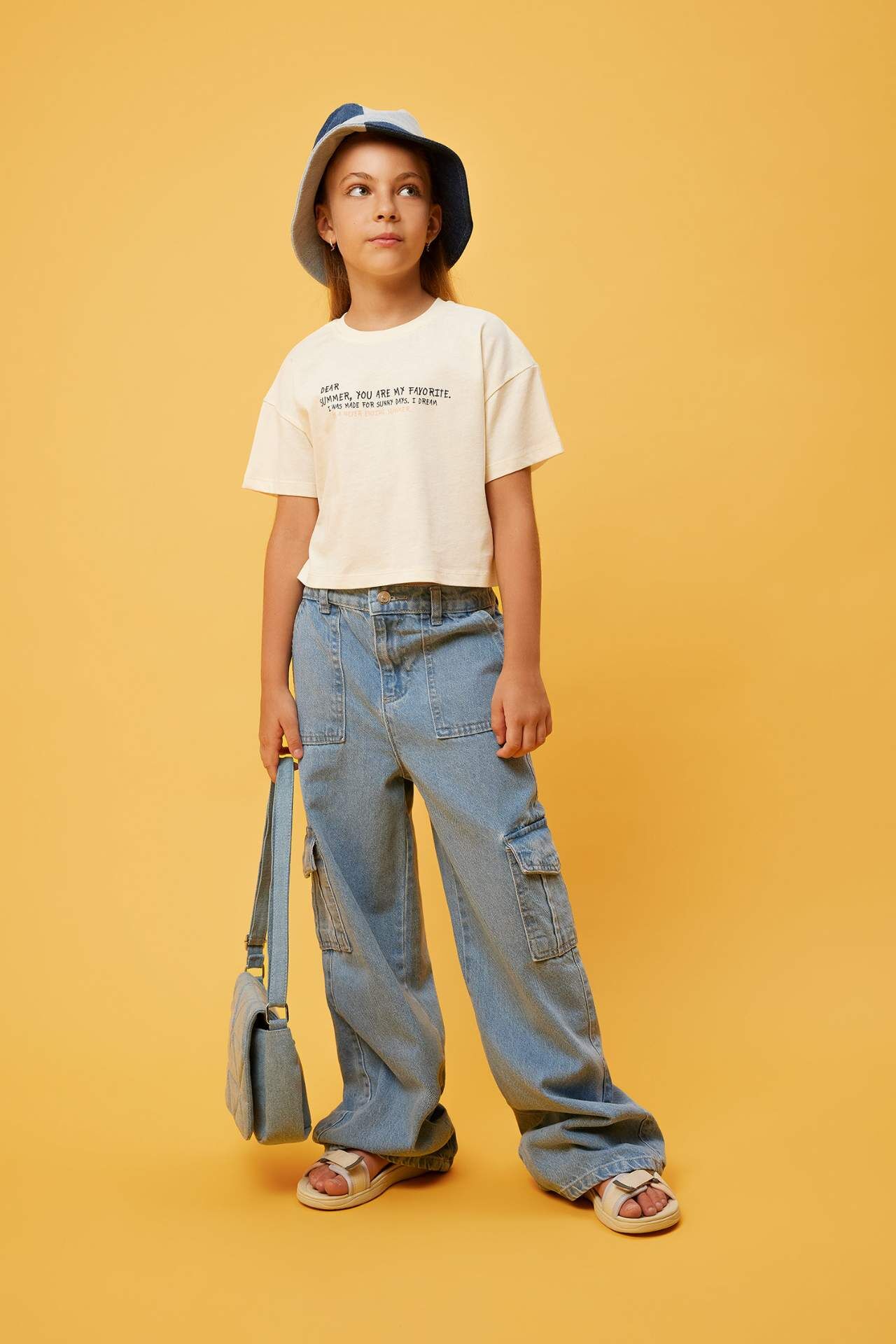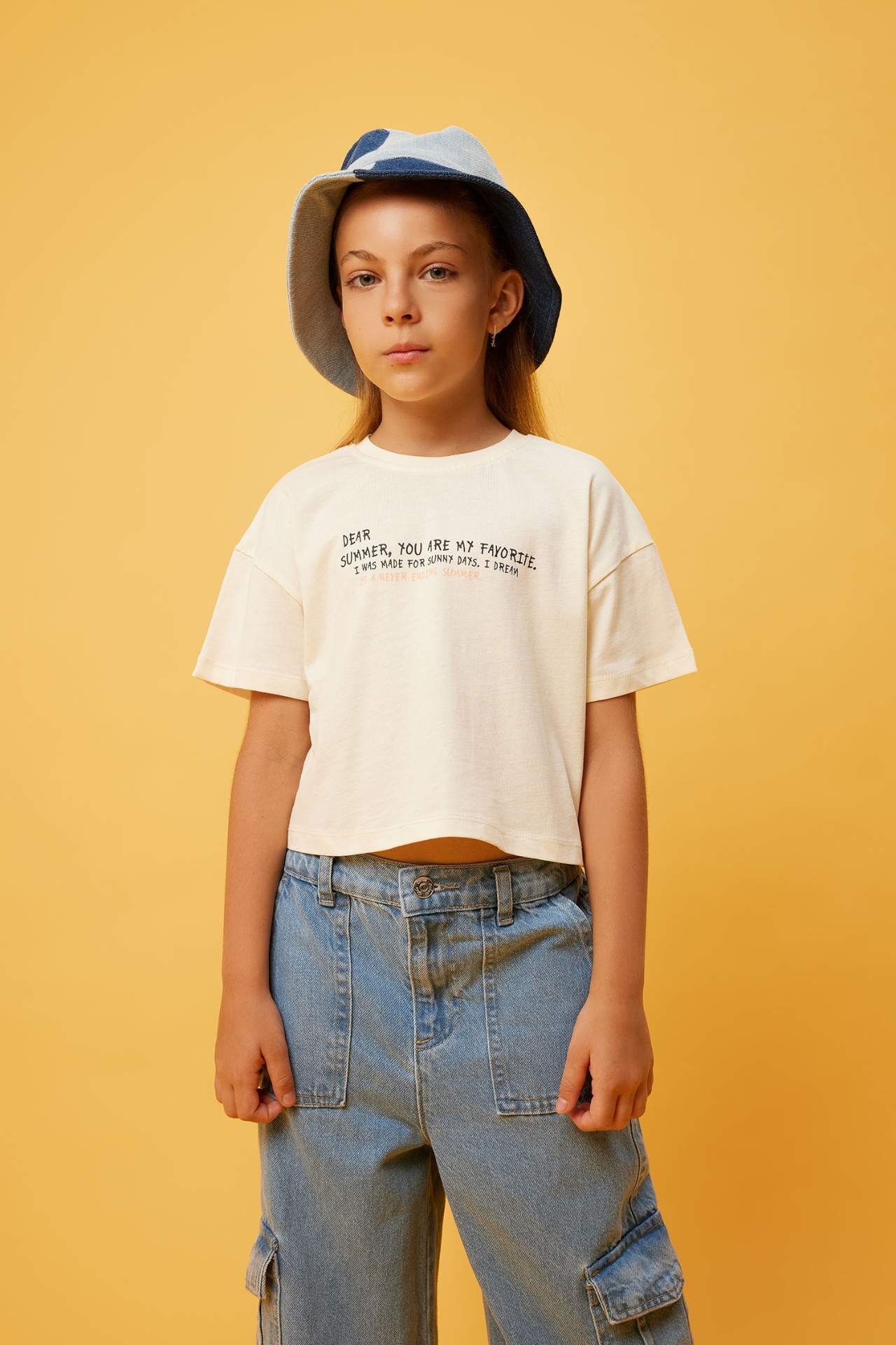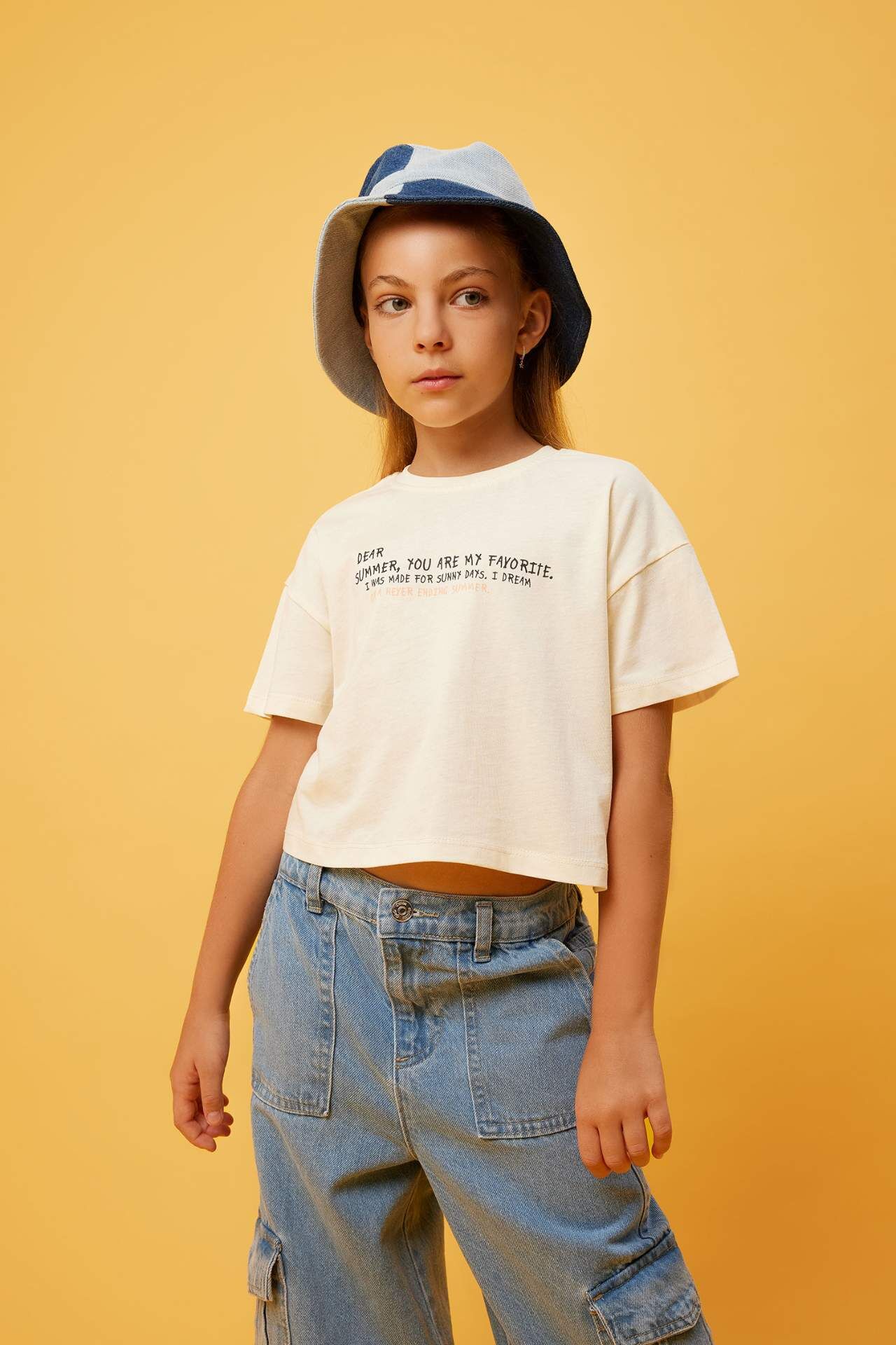 DeFacto Kız Çocuk Crop Kısa Kollu Tişört