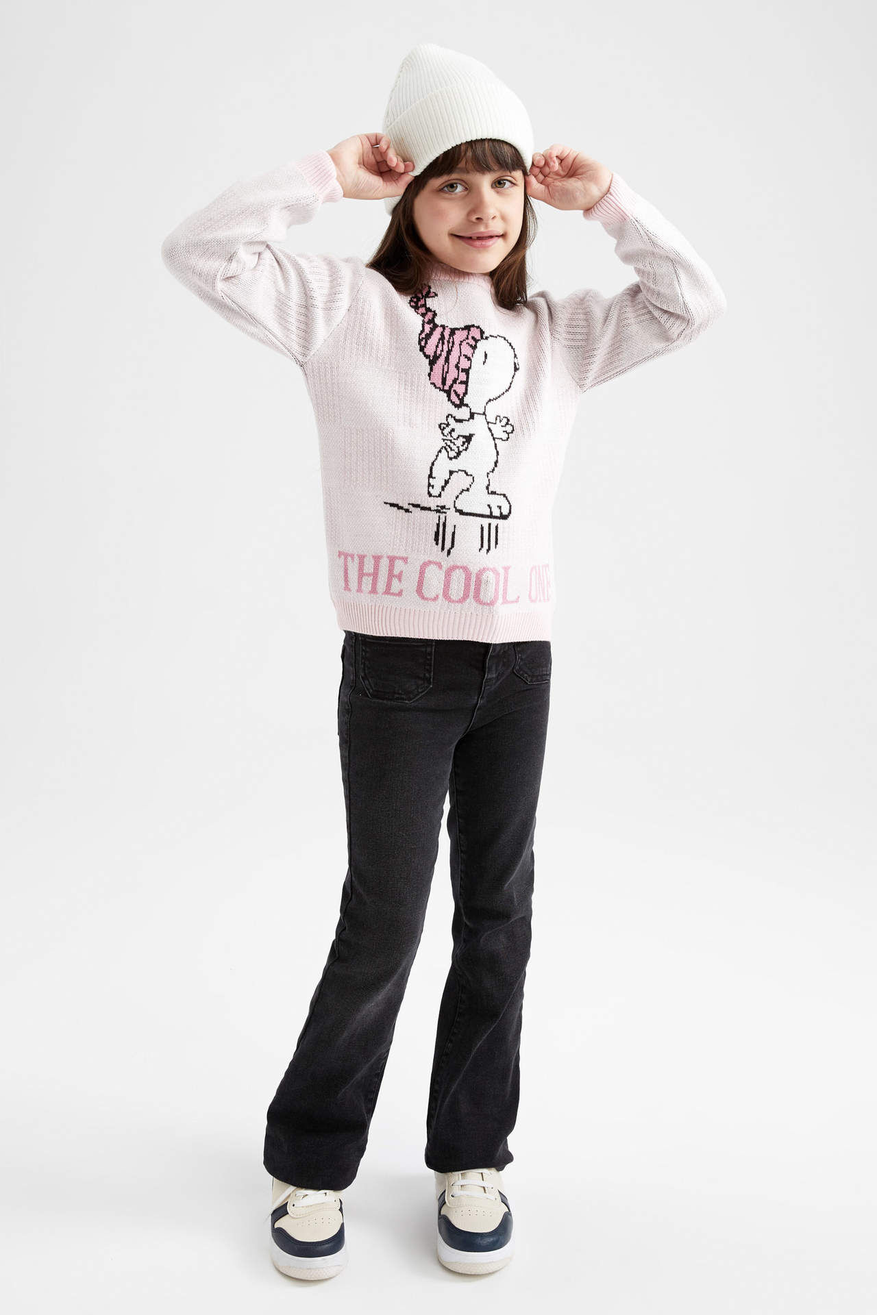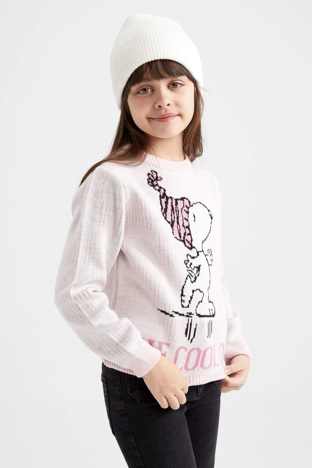 DeFacto Kız Çocuk Snoopy Bisiklet Yaka Triko Kazak